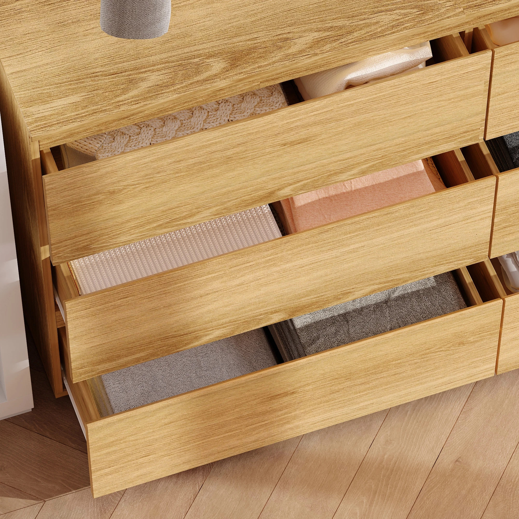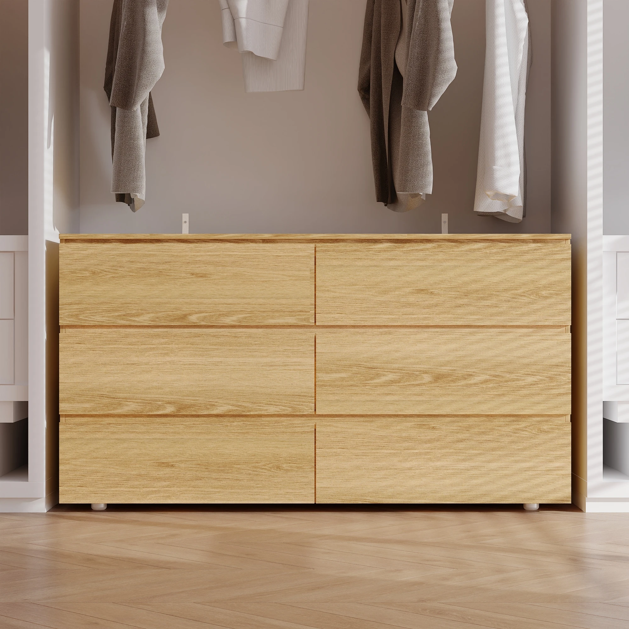 Introduce our elegantly designed 6-drawer dressing table, which perfectly blends modern style with practical functionality. This dressing table is designed to meet all your storage needs while adding a touch of sophistication to your bedroom. This product features a natural wooden surface that seamlessly blends into any decor style.