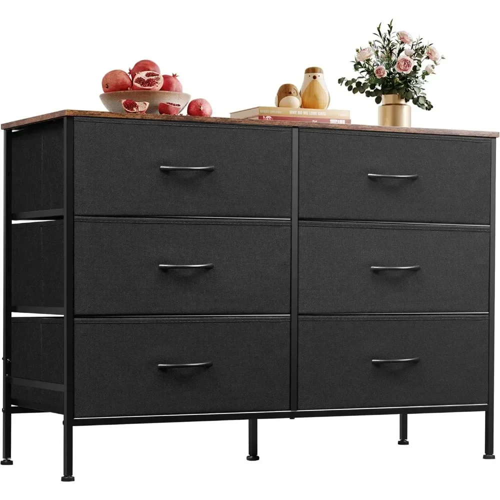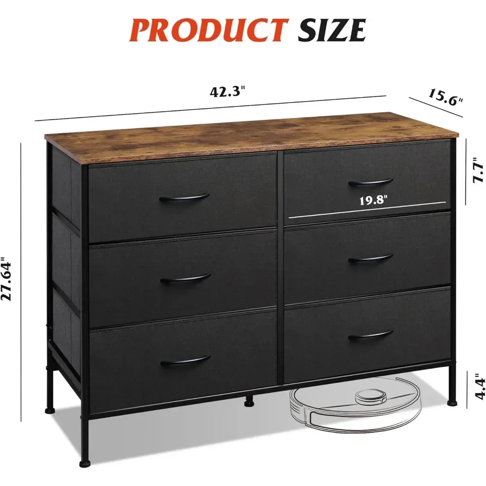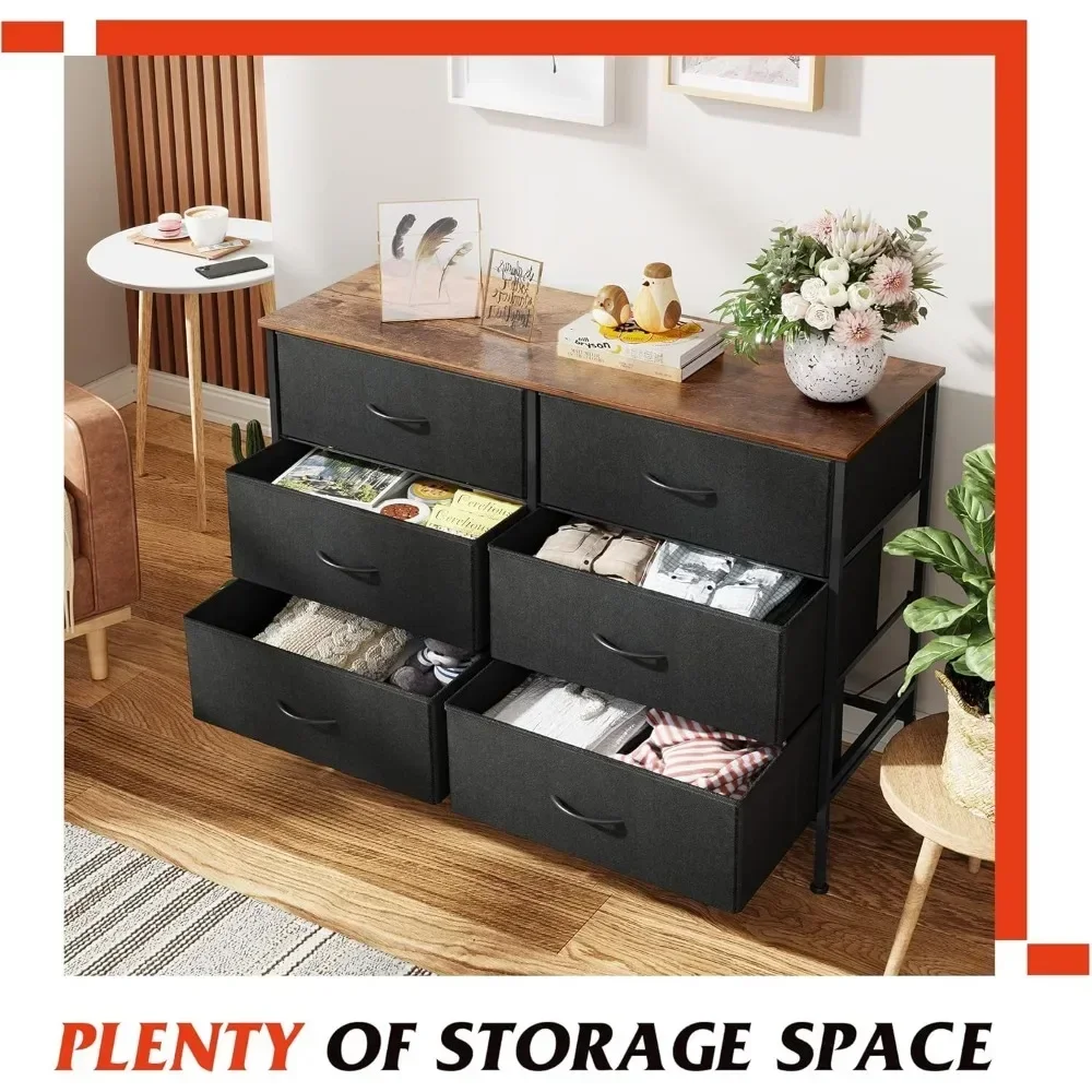 SUFFICIENT STORAGE SPACE: Storage dresser with 6 foldable fabric drawers, ideal for organizing your clothes, blankets, socks and other TV components.