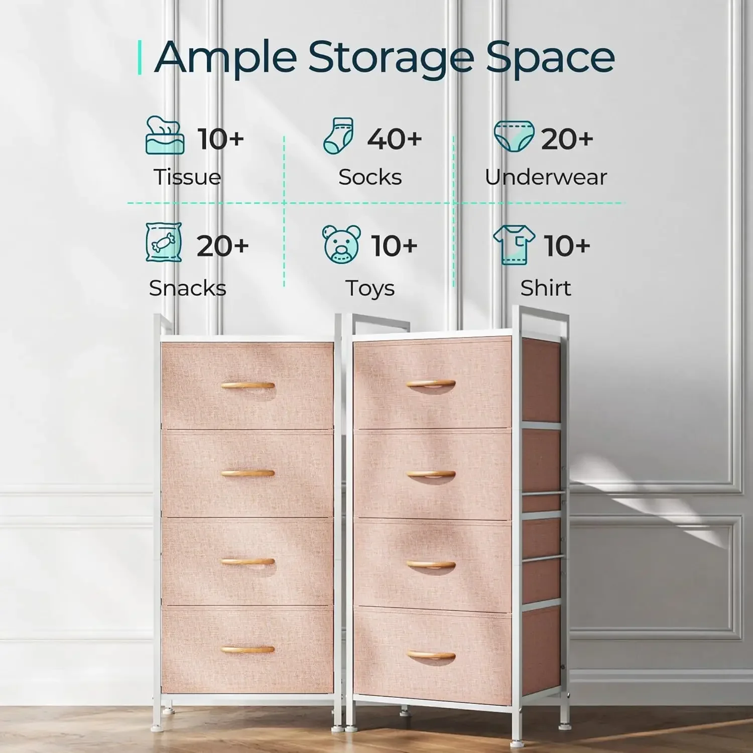 Dresser for Bedroom with 4 Drawers, Tall Dressers Storage Drawers, Tower Organizer Unit for Hallway, Entryway, Closets, Sturdy Steel Frame, Wood Top