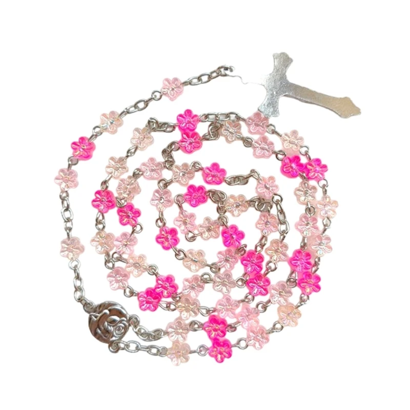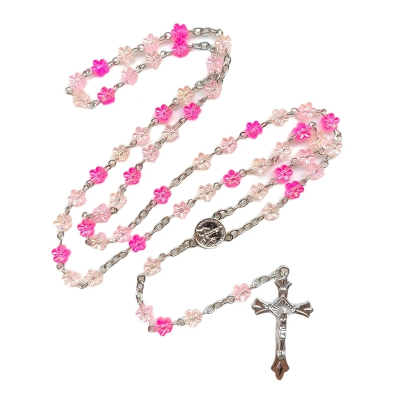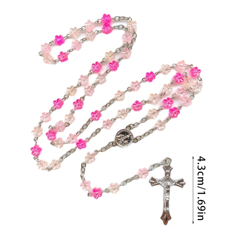 Embraces your faith with this Rosary Flower Beads Necklace, feature a Metal Crucifix Charm that serves as a great ornament to your spiritual devotional and a stylish necklace.