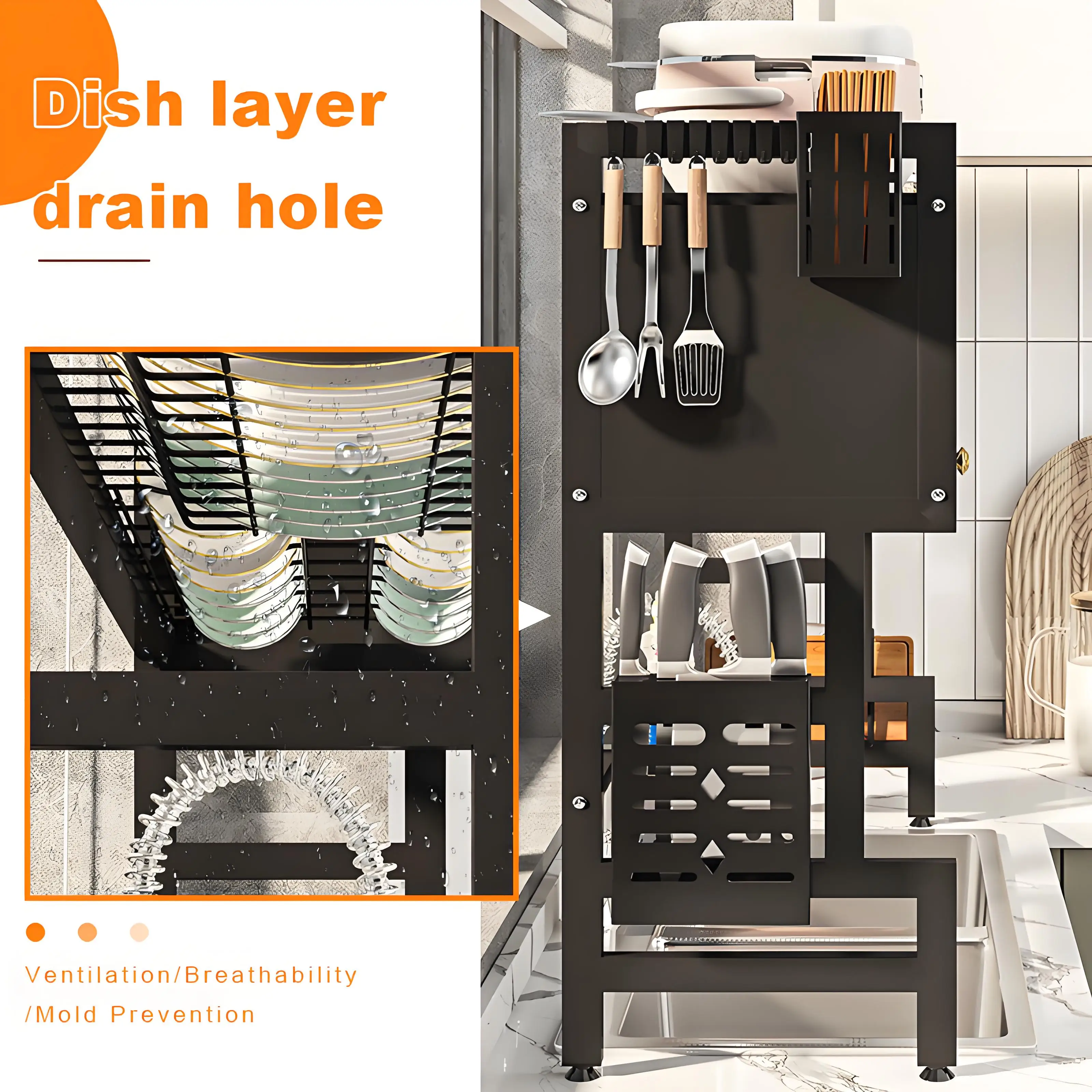 Dustproof Dish Draining Rack - Sink Organizer & Chopstick Holder