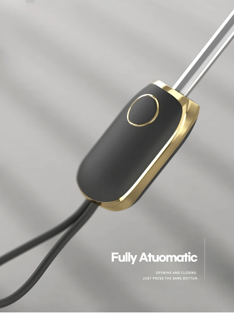 There is a button on the handle side, press it to open the umbrella, then press it again to close the umbrella, one hand to open and close it. After that you need to press the umbrella stick to finish to close the umbrella until you hear the sound.