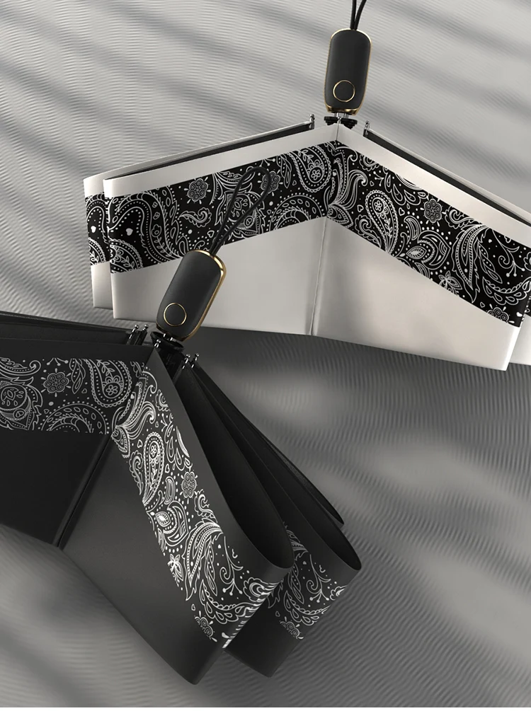 New Summer Automatic Umbrella for Women Paisley Style Folding Sun Umbrella Shade UV Protection Flat Parasol Umbrellas UPF50+