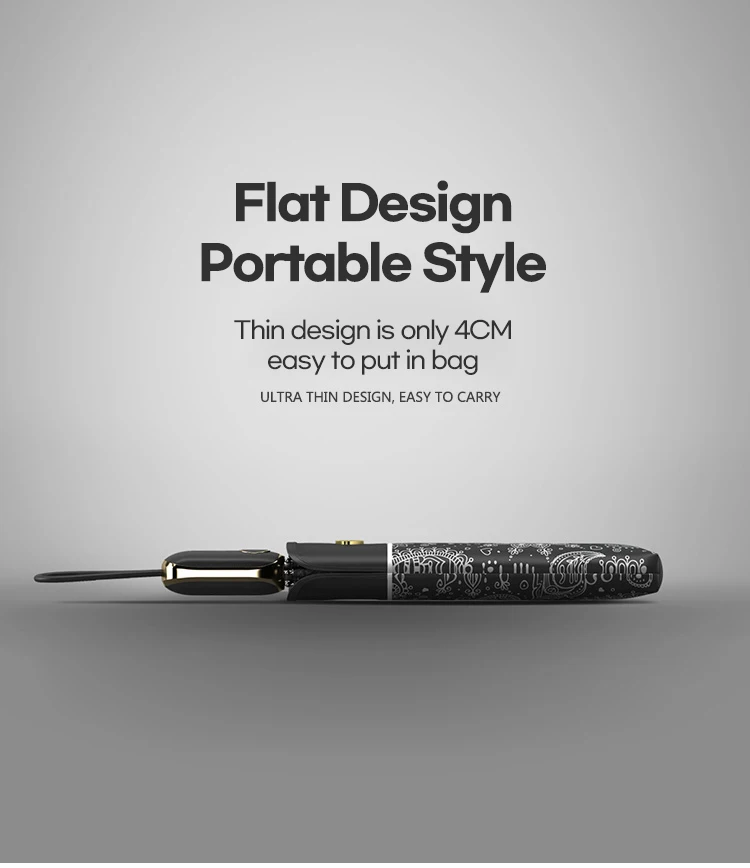 This umbrella is flat shape design, in order to make it portable and light, and easy to put in your bag.The designer designed this ultra-flat umbrella according to actual needs and ergonomics, highlighting the uniqueness and convenience of this umbrella.