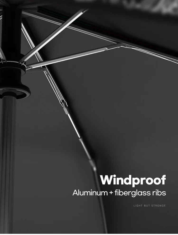 The umbrella skeleton is made of quality magnesium aluminum alloy, it is ultralight weight material and flexible, wind resistant and make it more light. Aluminum is corrosion resistant and rust resistant. You don't worry it will be broken in the wind.