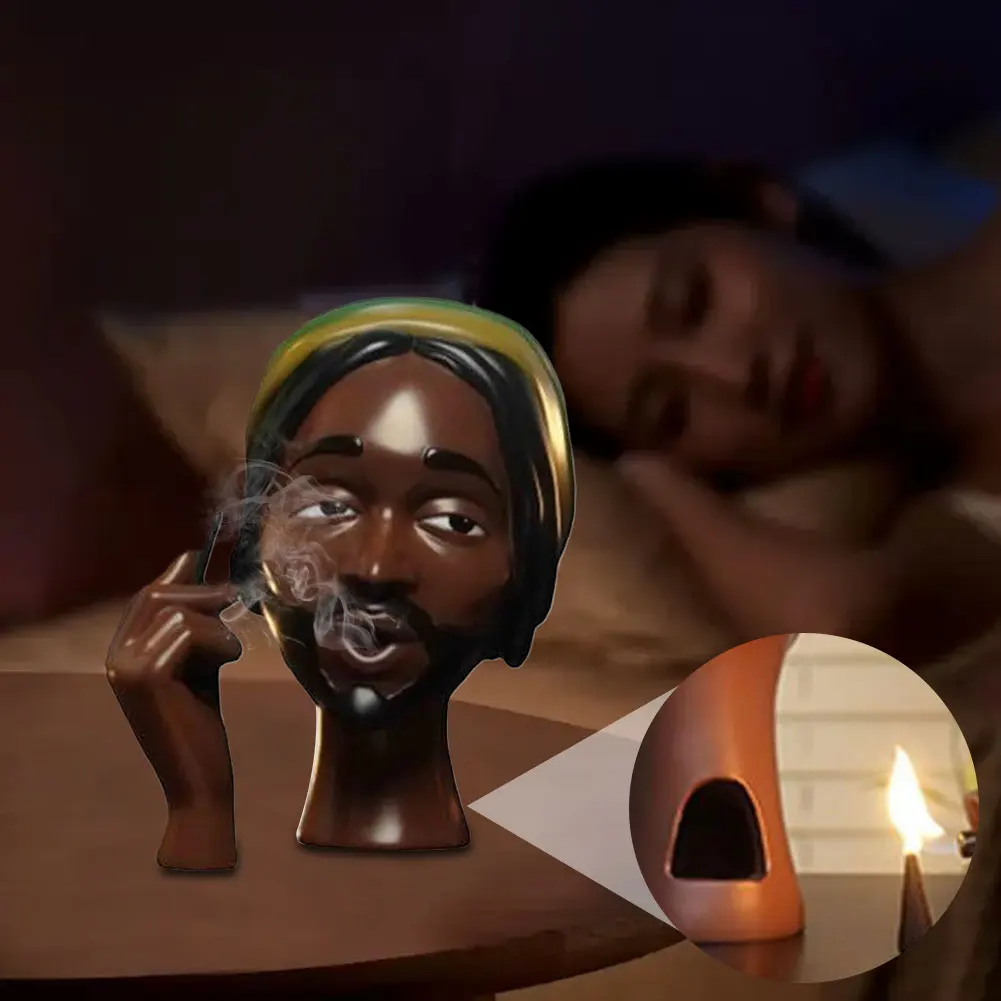 Feature: 1. Black Woman Head Incense Burner: The most unique incense burner that will elevate any space. Simply place an incense cone in the opening at the back of her neck, and watch as the fragrant smoke gently flows from her lips and creates an alluring and calming effect.2. Tranquil Ambiance: This incense holder helps to purify the air, meditate and relax,relieve stress and improve sleep quality. It is recommended to use it in a spacious place. Let the soothing aroma fill your room and create a serene atmosphere. To avoid pungency, please do not smell near burning incense sticks. 3. Premium Quality: Made from high-quality resin materials, our black women face incense stick holder is not only visually appealing but also durable. The exquisite shape and carved patterns make it even more unique and attractive, adding a touch of elegance to your decor. 4. Convenient Maintenance: Our incense burner is designed with practicality in mind. The easy-to-access opening at the bottom makes cleaning a breeze, ensuring that the incense burner remains tidy and organized at all times. 5. Versatile Use: This incense censer is not only a decorative ornament but also a tool for relaxation and aromatherapy. It helps purify the air, promotes meditation and calmness, reduces stress, and improves sleep quality. Suitable for various settings such as living rooms, bedrooms, offices, yoga studios, and more, allowing you to create a magical and peaceful ambiance wherever you desire. Specification: Origin: Mainland China Material: RESIN Hign-concerned Chemical: None Size: 15cm