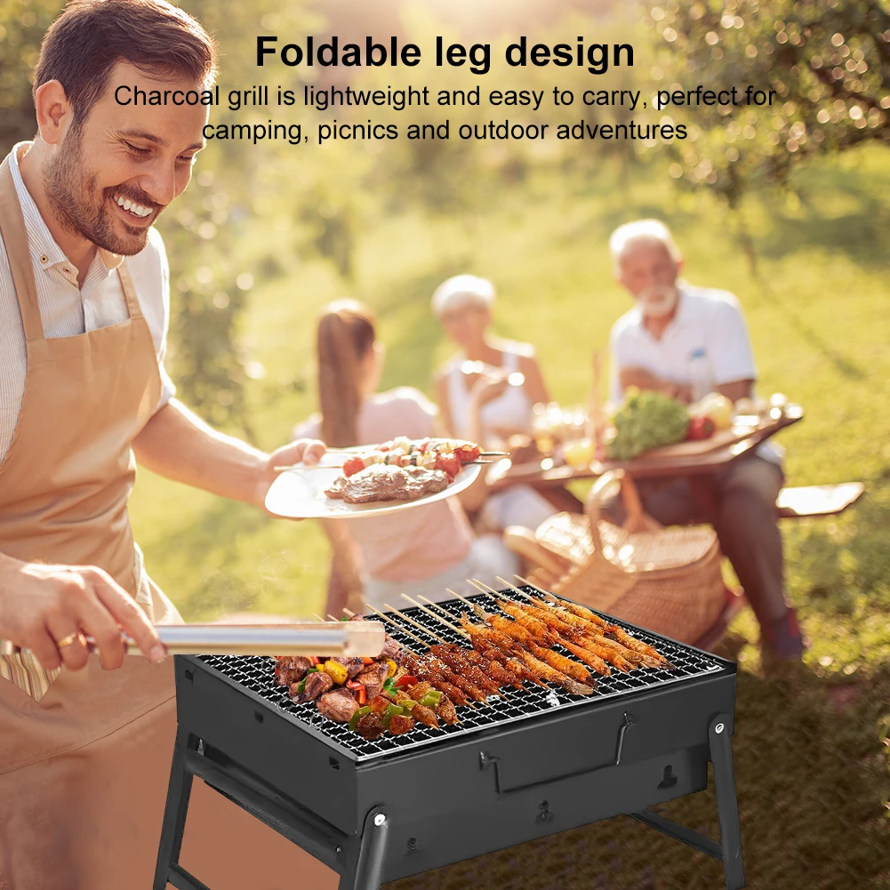 Features: 1.Portable and Compact Design: Measuring 13.78"*10.63"*7.87", this Portable BBQ Grill is lightweight and easy to carry, making it perfect for camping, picnics, and outdoor adventures. Enjoy barbecuing anywhere, anytime! 2.Enjoy Grilling Anytime: With a solid iron grill featuring adjustable height, savor delicious barbecues wherever you wish with this Folding BBQ Charcoal Grill. It's easy to clean and built to last. 3.Easy Setup with Folding Legs: Equipped with foldable legs, this Small Smoker BBQ Grill offers quick setup and compact storage. Its stable design ensures a worry-free grilling experience on any surface. 4.Efficient Ventilation System: The Mini BBQ Tool Grill features circular vents at the bottom to enhance airflow, ensuring optimal charcoal burning for heat distribution and superior grilling results. 5.Versatile Outdoor Use: This Tabletop Barbecue Grill is ideal for camping, picnics, beach parties, or backyard cookouts. Easy to assemble and user-friendly, making it a great companion for your outdoor cooking adventures. Specification: Origin: Mainland China Product size:350.00x270.00x200.00mm/13.78x10.63x7.87inch
