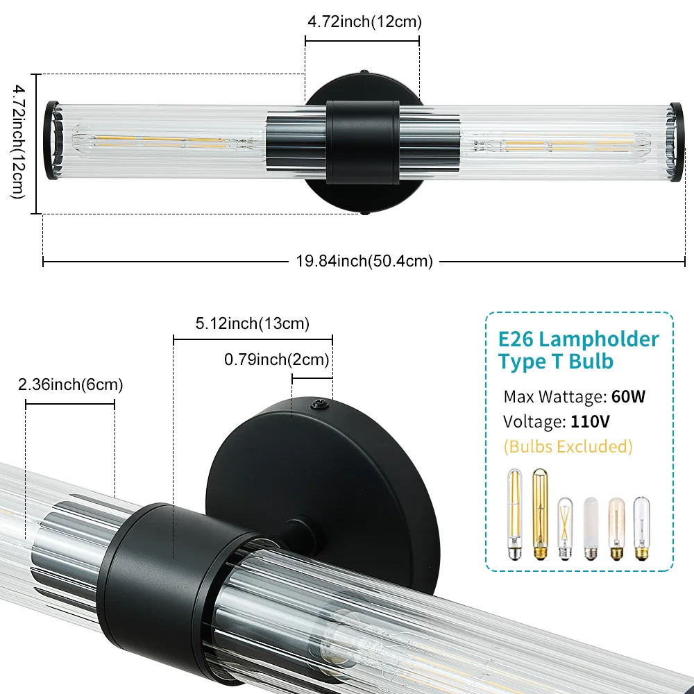 ��APPLICABLE BULBS: Bathroom vanity light with E26 base, typeT-bulb recommended, 60W max; fully dimmable when using dimmable bulbs and compatible dimmer switch. (Bulb and dimmer switch excluded)