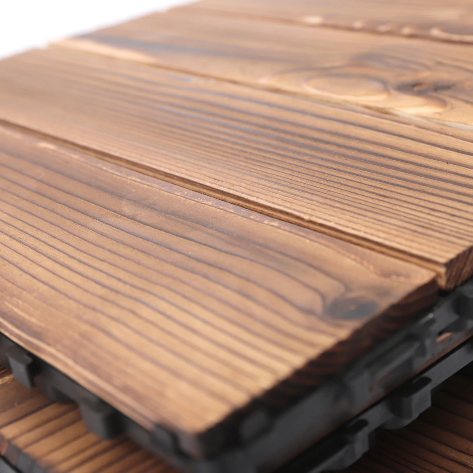 The wood flooring tiles are suitable for indoor or outdoor use. They can be installed on cement grounds, stone grounds, ceramic tile grounds, epoxy resin grounds, etc. in the living rooms, bedrooms, gardens, swimming pools, etc.