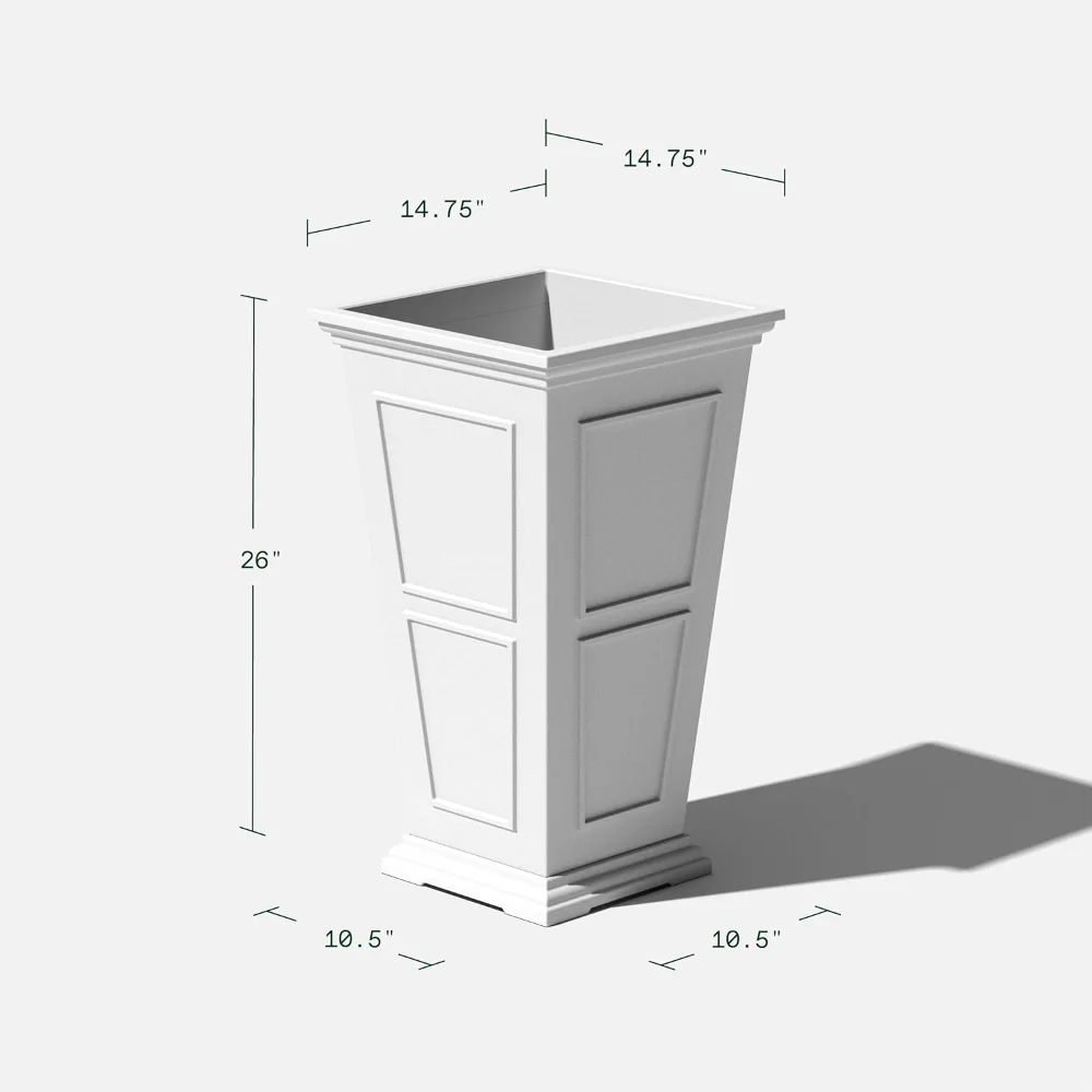 DIMENSIONS & DETAILS: This double-walled planter's exterior dimensions measure 26" in Height, 15" in Width, 15" in Length. With the removable insert shelf installed, the interior dimensions measure 24" in Height, 13" in Width, 13" in Length