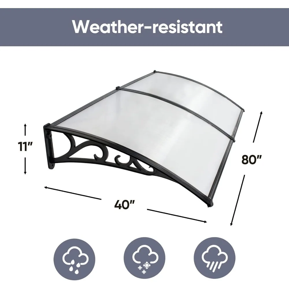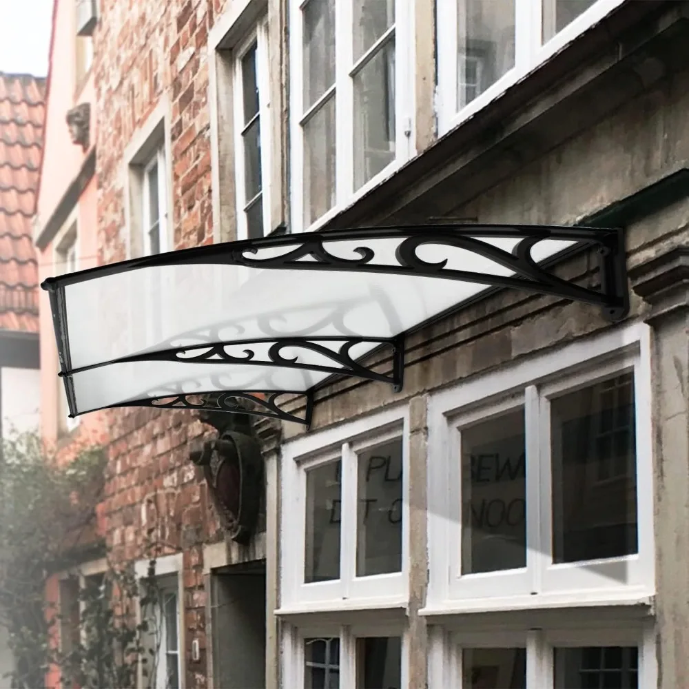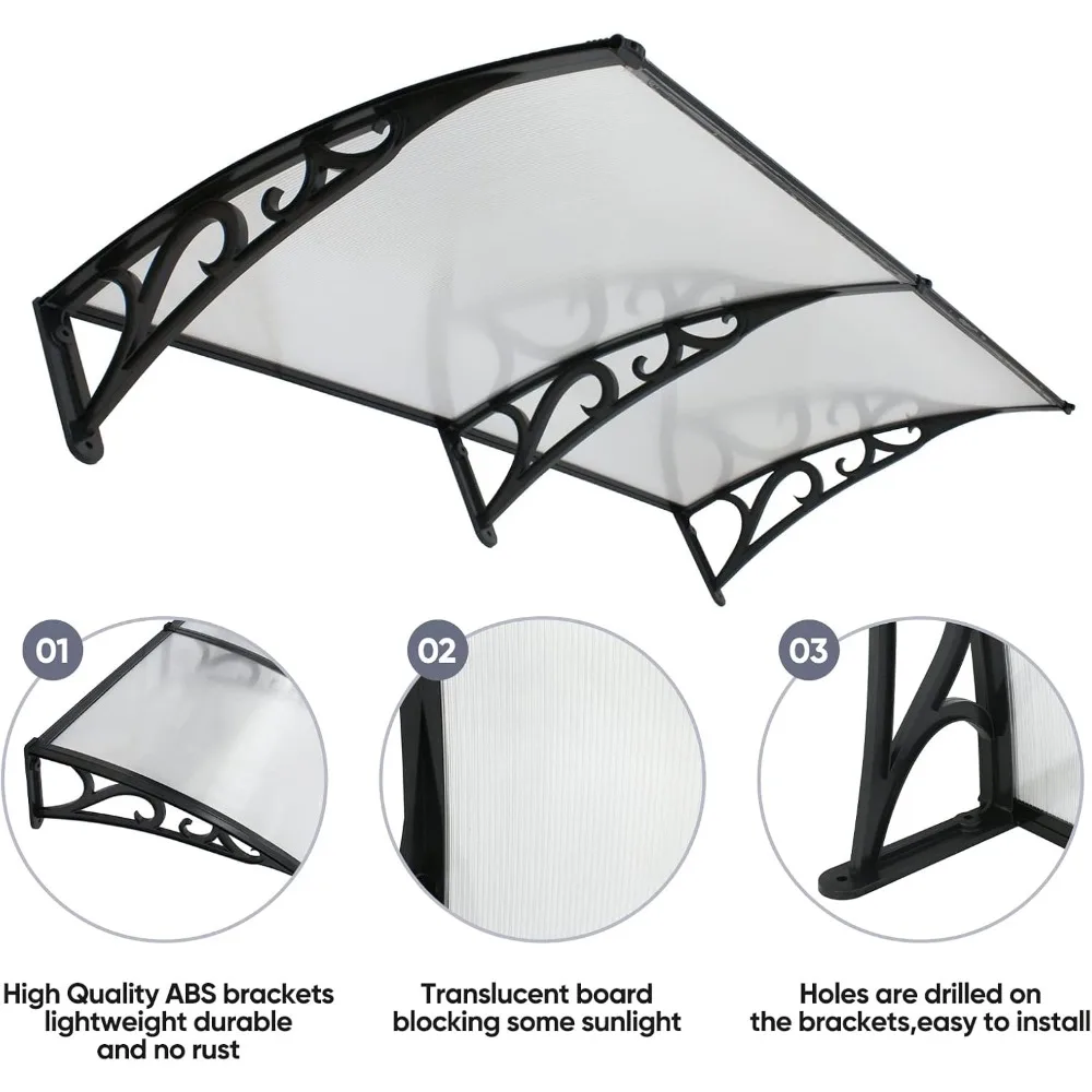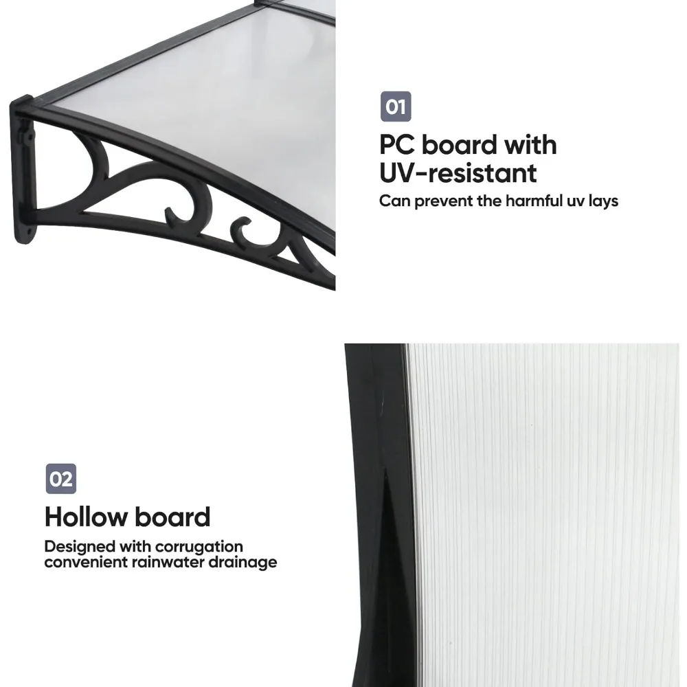 Polycarbonate Window Door Awning Board: This awning canopy panel is made with durable polycarbonate material, lightweight but waterproof, anti-rusting and corrosion resisting. Strong ABS window awning brackets and aluminum stripe provides strong constructure,built for long