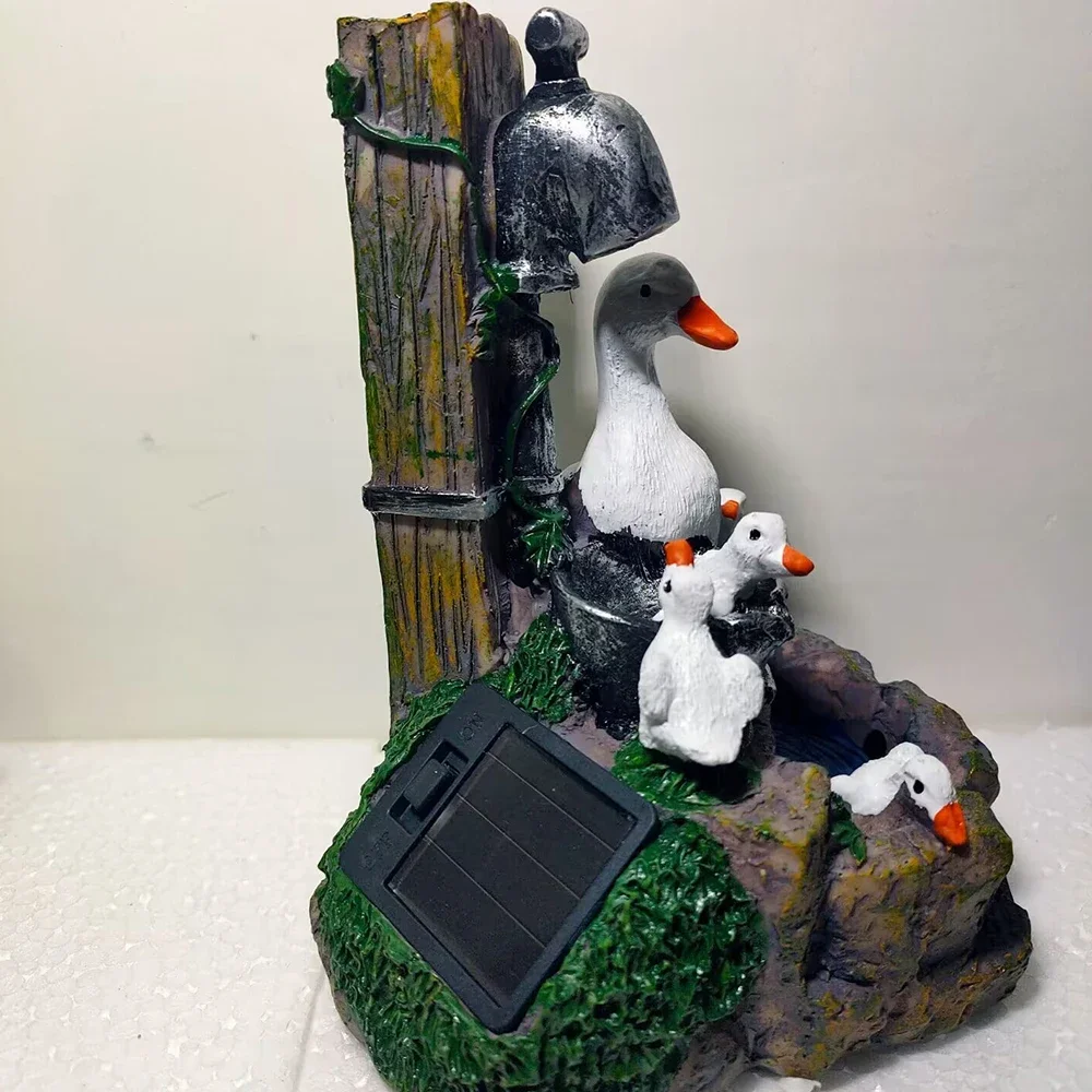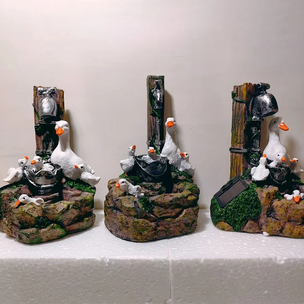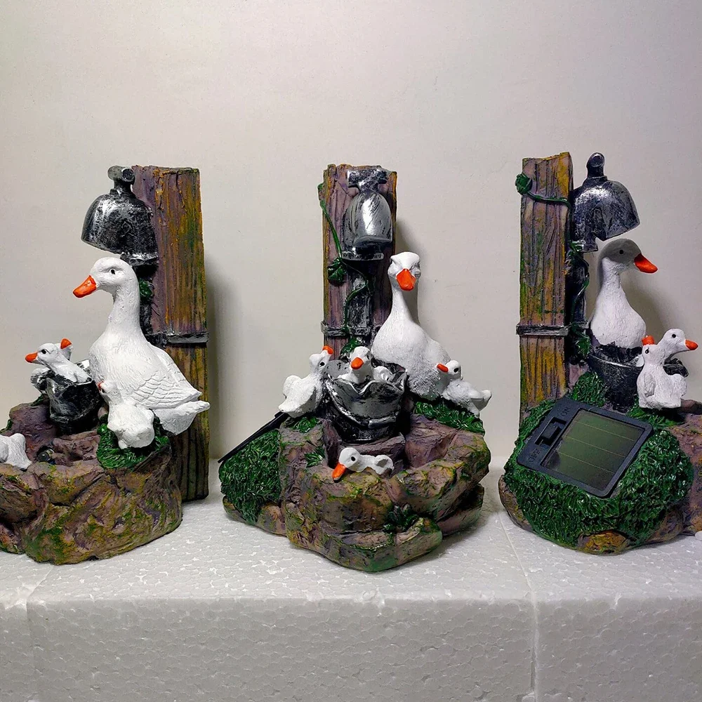 Duck Solar Power Resin Patio Fountain Garden Design With Led Light Squirrel Garden Decoration Outdoor Simulation Decoration