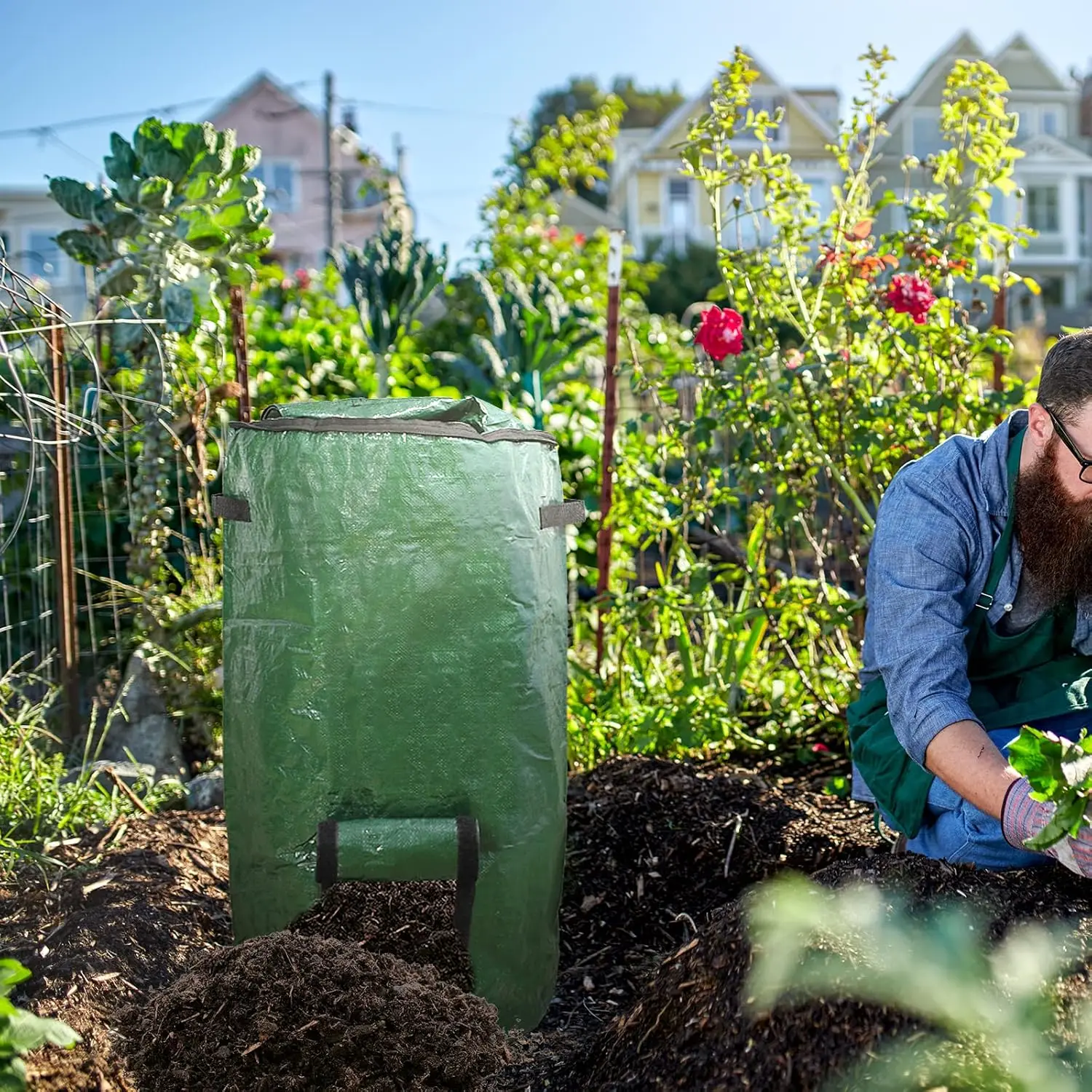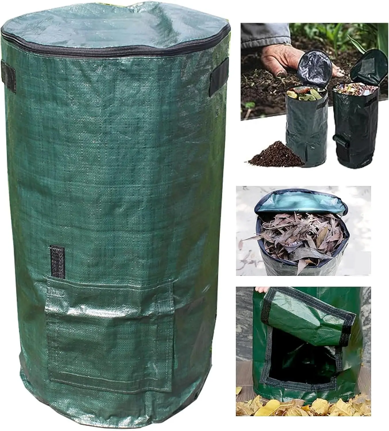 1/2Pack Compost Bin Bags Reusable Yard Waste Bags Lawn Bags Heavy Duty Garden Bag Composting Bags Garbage Can Outdoor Container with Zipper Lid and Handles for Loading Leaf Trash