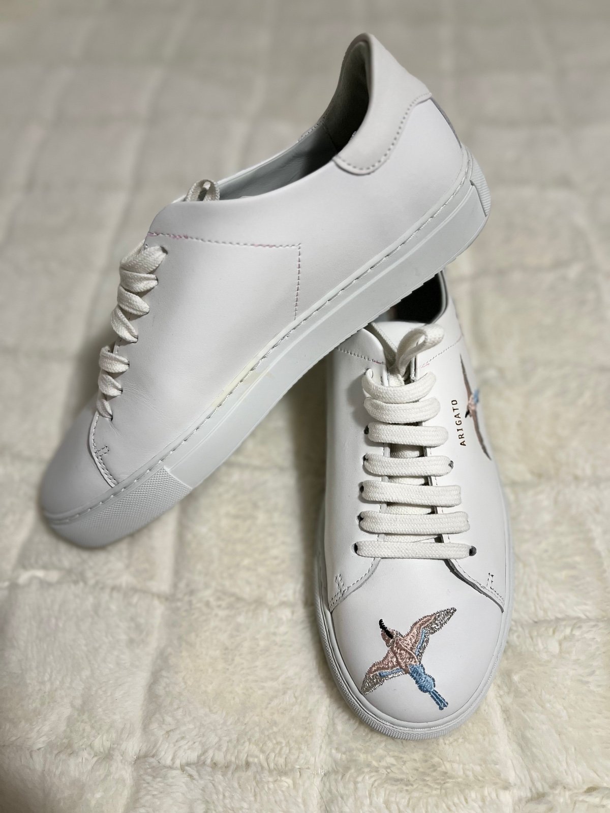 An embroidered bird lets this stylish sneaker take flight, and the smart calfskin construction takes it to another level.