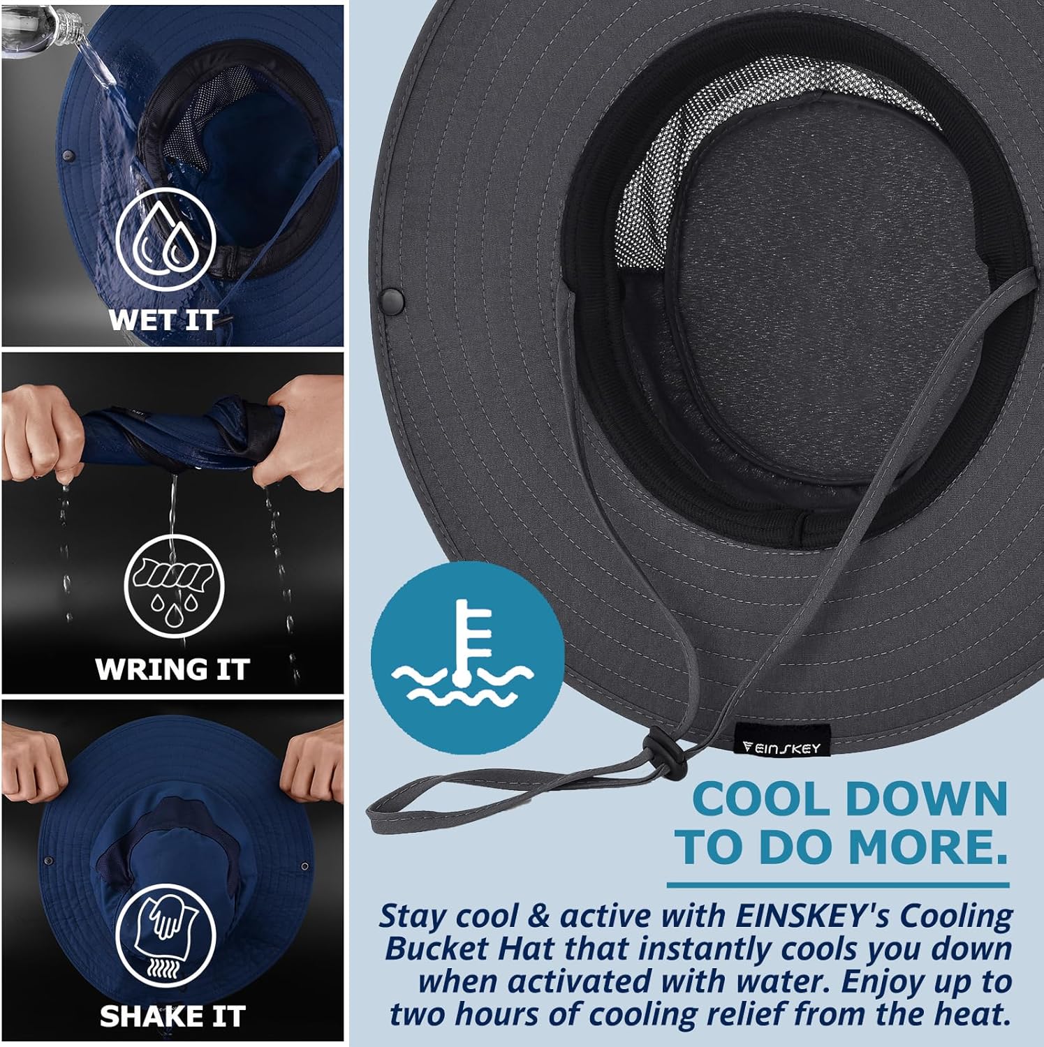 Stay Cool & Protected with the EINSKEY Cooling Sun Hat! Designed for ultimate sun protection, this versatile hat features a wide brim that provides excellent shade, keeping you comfortable during outdoor activities like fishing, hiking, or gardening. The adjustable drawstring and ponytail opening ensure a secure, customizable fit for various head sizes, making it perfect for both men and women. Breathable & Comfortable: Crafted with breathable mesh panels and a built-in sweatband, this hat keeps your head cool and dry even on the hottest days. Made from lightweight, durable materials, it’s machine washable for easy care and long-lasting use. Packable & Travel-Friendly: The foldable design makes it easy to pack and carry, whether you're heading to the beach, trail, or garden. It’s the perfect companion for all your sunny adventures. Functional & Stylish: With its UPF sun protection and practical design, the EINSKEY Cooling Sun Hat is a must-have accessory for outdoor enthusiasts. Stay protected, comfortable, and stylish while embracing the elements!