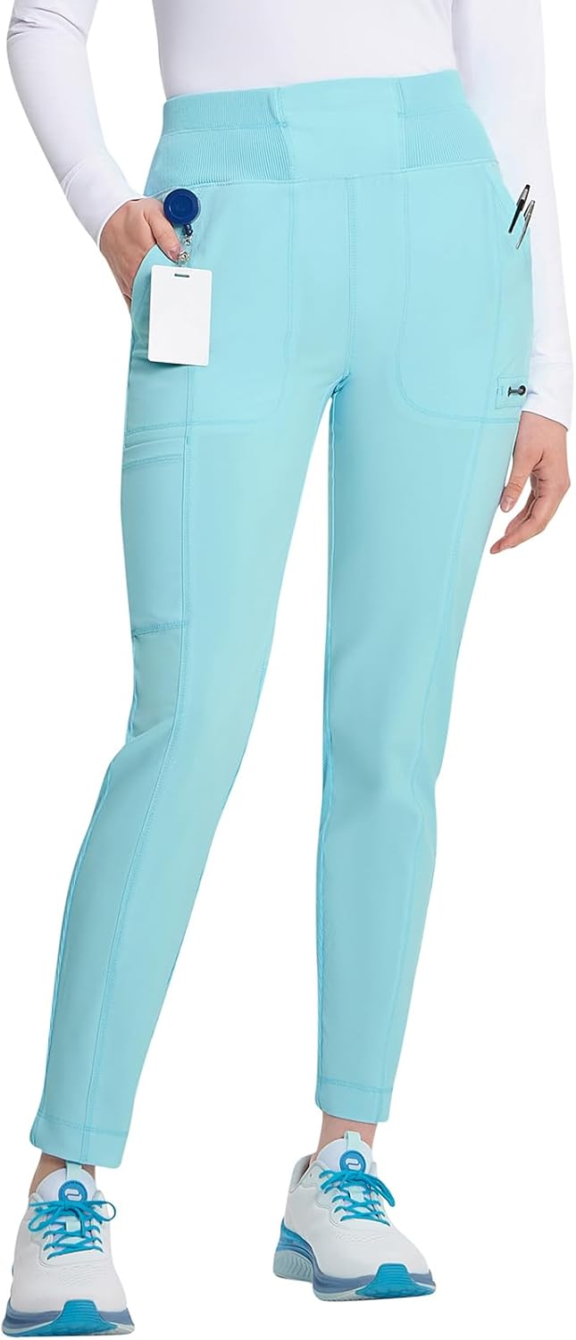 Our High Rise Skinny Leg Pant is a perfect blend of style, comfort, and functionality for the modern professional. Crafted with precision, these pants feature a contemporary fit and a high-rise pull-on design, adorned with a wide rib-knit waistband equipped with interior elastic and bungee drawcords. This ensures a customized and secure fit, allowing you to move with confidence throughout your day. Stay organized and prepared with the abundance of storage options provided by the five pockets. With two front pockets, two back pockets featuring snap closures, and a cargo pocket, you'll have ample space to keep your essentials close at hand. A utility bungee loop on the left front pocket adds a practical touch, perfect for securing keys or small tools. Designed with both style and functionality in mind, these pants feature front-leg seams and rib-knit back panels from knee to hem, enhancing both mobility and aesthetic appeal. The skinny leg design with a 10" leg opening offers a sleek and modern silhouette, effortlessly elevating your look. Crafted from a premium blend of polyester and spandex poplin, these pants offer exceptional comfort and durability. The moisture-wicking and easy-care properties ensure that you stay fresh and presentable throughout the day, while the 360° stretch allows for unrestricted movement. Easy to care for, these pants are machine washable with similar colors, making maintenance a breeze. Whether you're at work, running errands, or enjoying leisure time, the High Rise Skinny Leg Pant is the perfect choice for the fashion-forward professional who refuses to compromise on style or comfort.