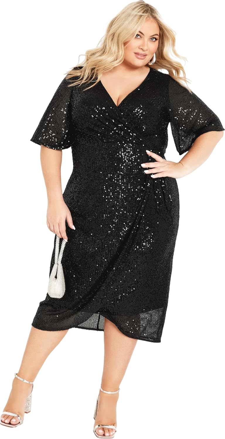 Step into the spotlight with the Naomi Sequin Dress in timeless black, where glamour meets sophistication. This dress isn't just a piece of clothing—it's an experience, designed for those who are ready to own the room. Picture yourself at your next event, draped in luxurious sequins that catch the light with every move, transitioning seamlessly from a demure wine and dine to a vibrant dance floor. The Naomi Sequin Dress features a plunging V-neckline that exudes a seductive elegance, gracefully complementing the wrap design that flatters any figure. Every detail, from the short sleeves to the midi length, is crafted to make you feel your most confident and beautiful self. The black sequins transform the Naomi Sequin Dress into a shining masterpiece, allowing you to express your individuality and style with ease. The wrap design not only accentuates your silhouette, but also offers a versatile fit that adapts to your curves. Fully lined for comfort, it ensures you feel as good as you look, allowing you to move effortlessly throughout the night. The midi length achieves the perfect balance between trendy and classic, making this dress a standout choice for any occasion—from an elegant gala to a cocktail party with friends. Pair the Naomi Sequin Dress with patent pumps and a glossy lip to turn heads wherever you go. The polished styling effortlessly elevates your look, making this dress a staple in any fashion-forward wardrobe. Feel empowered as you celebrate your unique style, flaunting a dress that embraces diversity and encourages self-love. With the Naomi Sequin Dress, you're not just dressing up—you're making a statement. Get ready to shine and order yours today.