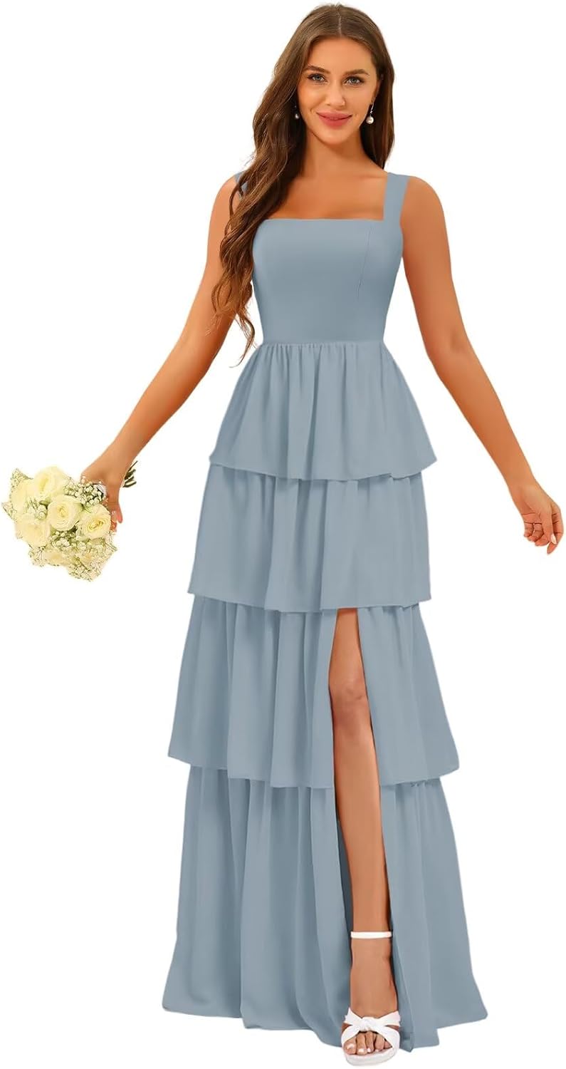 YOFF Tiered Ruffles Bridesmaid Dresses with Slit 2026 Chiffon Maxi Formal Evening Dresses for Women YO239