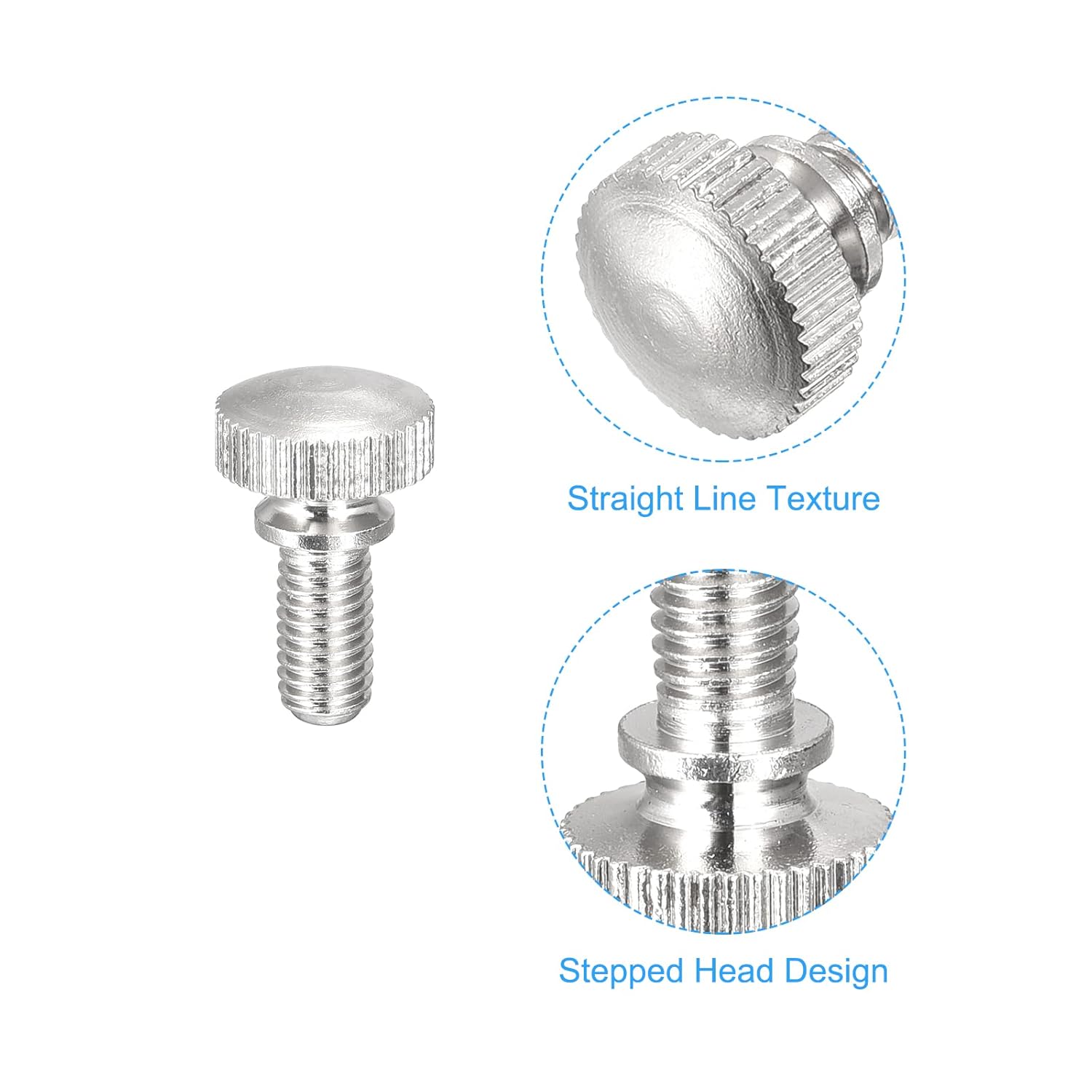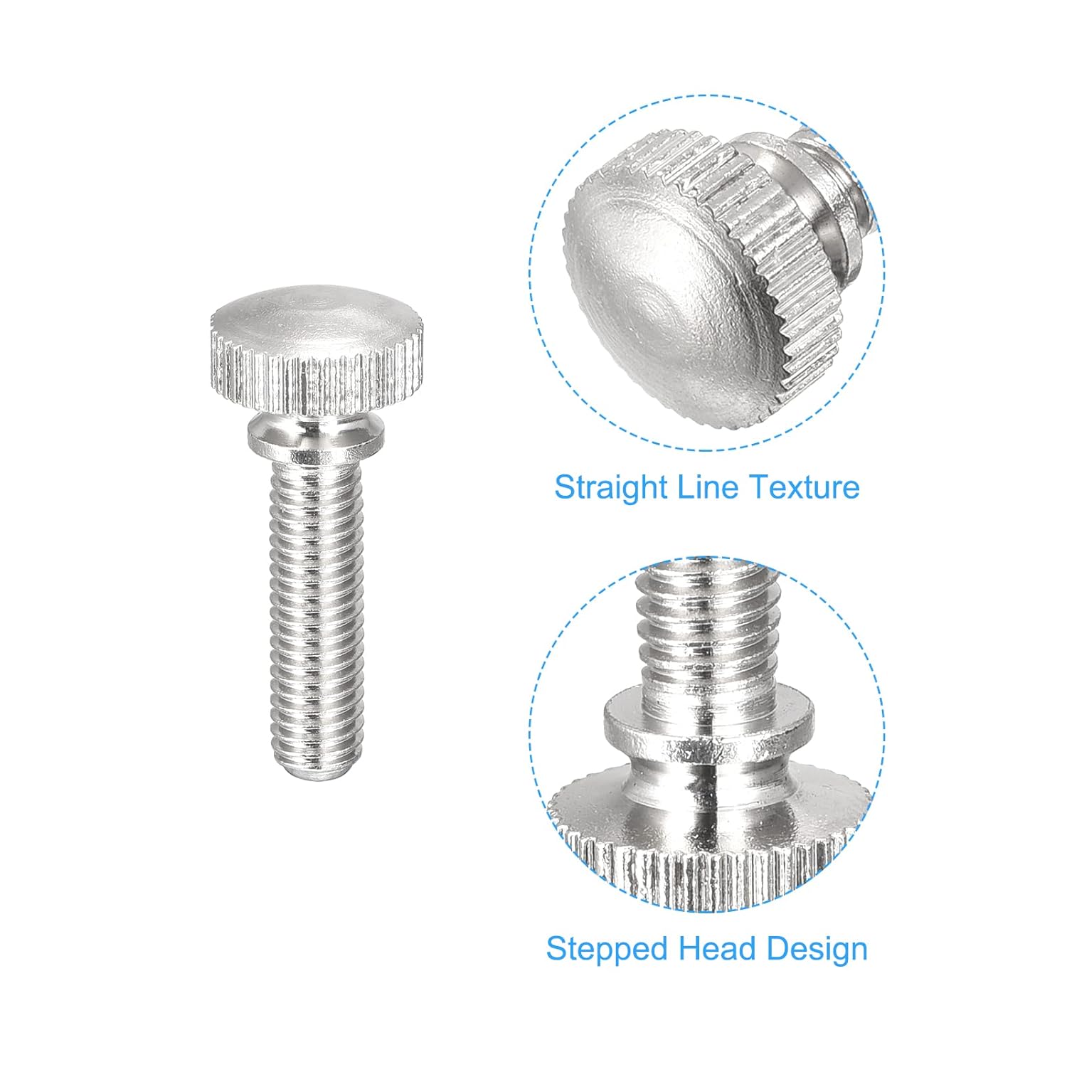 • [Screw Head] - Head Style: Round Knurled Head; Head Diameter: 9.5mm/ 0.37"; Head Thickness: 8mm/ 0.31". The larger the diameter of the thumb portion, the greater the clamping force that can be applied
