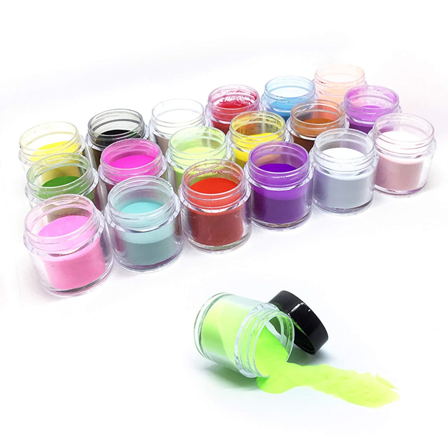Features: A great nail powder for starters and advanced users, you can DIY your nails at home. Easy and convenient to use, can easily mix and match with all nail gels. Colors are beautiful, 18 different colors are included in a set. Suitable for all skin types, harmless and safe. A nice gift option for birthday and holiday.Specifications: Type: Makeup Brush Color: Multi-color Quantity: 18 Bottles Net Weight: 10g / 0.35oz Package Size: Approx. 18.7 * 9.5 * 3.4cm / 7.36 * 3.74 * 1.38in Package Weight: Approx. 300g / 10.58ozPackage List: 18 * Nail Art Powder