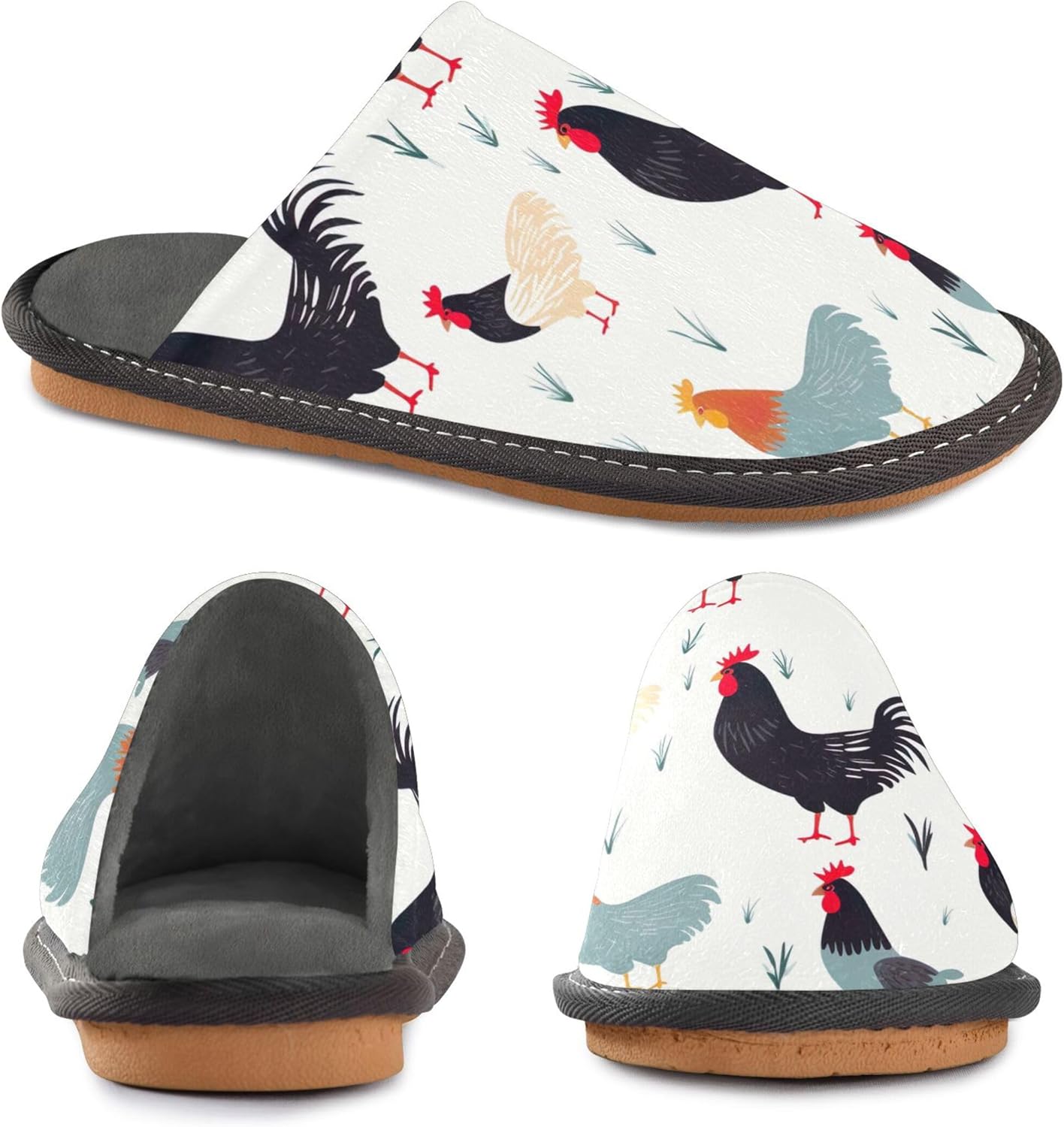 Rooster Hens House Slippers – Cozy Fuzzy Slippers for Guests, Washable & Disposable, Perfect for Shoeless Home, Spa & Hotel Use A111976