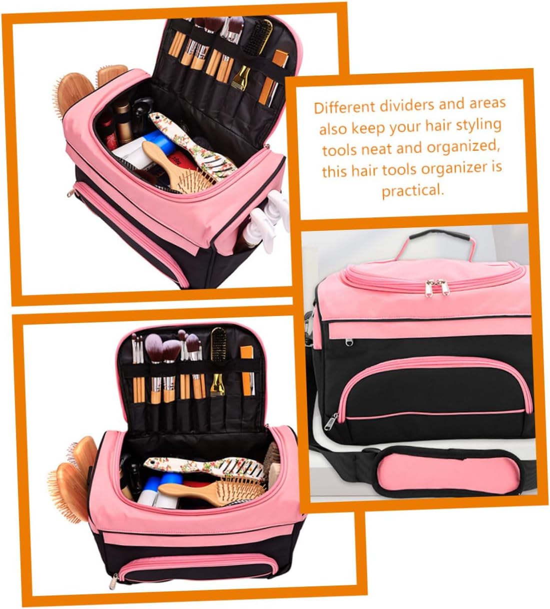 Package Include 1 x Barber Travel Bag Characteristics -Material:Oxford cloth, metal hair tools organizer -Color:Pink barber carrying case -Size:34.50X20.00X25.00cm/13.56X7.86X9.82in barber suitcase - Different dividers and areas also keep your hair styling tools neat and organized, this hair tools organizer is practical hair stylist travel case. - Simple appearance of this barber bag can be a present option for your family members or friends who work as hairdresser tool bag. - This hairstylist bag can store small barber tools such as scissors, combs or large tools like hairdryers, straighteners, , cape and spray bottles, meet your demands hair tool bag. - Made from sturdy materials, this barber tools bag will not easy to tear, wear, can be used for long time hair tools travel bag. - Detailed workmanship, the barber travel bag offers more convenience for easy access to your hairdressing tools barber travel bag for clippers and supplies.Goods Informationhair stylist must haves Simple structure, easy to take, this hair tool organizer is suitable for hair salon and outdoor travel use, bring you much convenience.hair tools organizer This barber bag has large storage areas and all-around protection, serve you better.hair tools travel bag This bag for hairdresser can be used to store some scissors and other hair cutting tools, support long time using