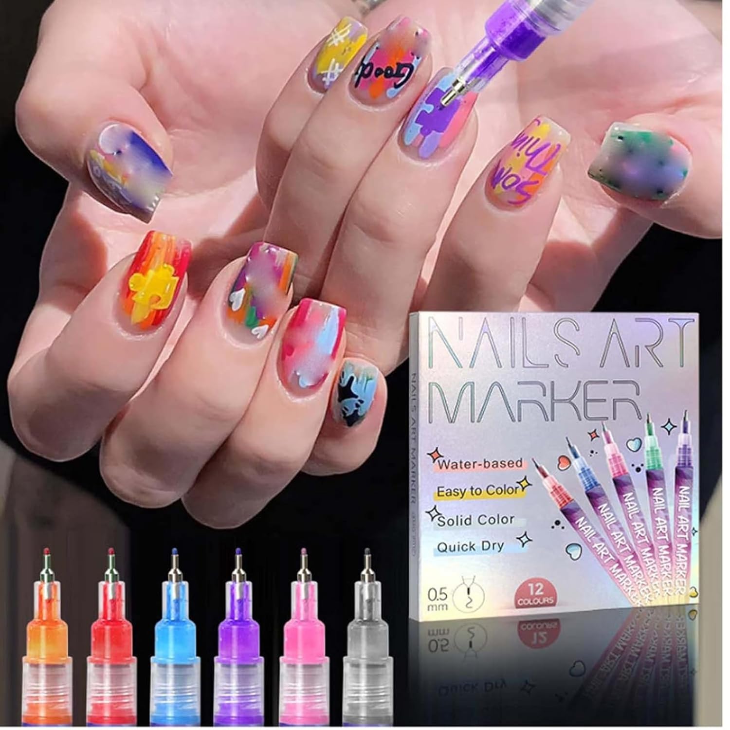 12 Color Nail Art Pens, 0.5 MM Nail Polish Pens Set, Waterproof and Quick-drying Nail for DIY Nails Art Design Manicure Tools