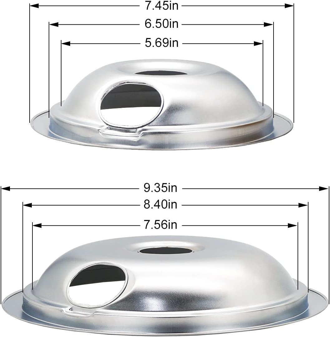 MP22YA electric range burner is a set of 2 large 8" 2100 watt 230 v 5 turn burners (MP21YA) and 2 small 6" 1500 watt 230v 4 turn burners (MP15YA). It has a "Y"style bracket. MP22YA electric range burner replacement for numbers: 5304431014, 484783, SU204, TS5W8221, 404099, Y04000033, S58Y21, SU205, 660532, TS4W6215, 04080, 5303310283, 04000034, WB30T10089, Y04000034, 484782, 9761347, 12001231, S46Y15. Drip bowl (also called a drip pan) for burner on an electric range. The drip pan sits underneath the heating element to catch drips or spills. Designed for use with plug in style burners. It is located below the surface burner element. Because the cooktop is the most used area in the kitchen, these bowls are often damaged or become very dirty, so you need to replace this part. Please note: Wait until the surface is cool to the touch before installing this part. Measurements of Bowls: 316048414 6" Small Bowl measures 7.45" in diameter 316048413 8" Large Bowl measures 9.35" in diameter 316048414 Drip Pans replaces: 3013589, 3051021, 3051478, 3205285, 08002897, 08003242, 08005369, 08010467, 08011440, 08012559, 316221101, 316221301, 318067017, 318067021, 318067046. 316048413 Drip Pans replaces: 3013588, 3051020, 3051479, 3205286, 08002898, 08003243, 08004682, 08005370, 08010469, 08011441, 08012560, 316048403, 316221201, 318067010, 318067018. Works with most top name brands: Frigi-daire, Ken-more, Tappan, Kelvinator, Gibson, Crosley, Westinghouse, Uni brand ranges and cooktops. Important Note: Does NOT fit GE, Hotpoint and Whirlpool models. Package list: 2 x 316048413 8 Inch Chrome Drip Pans 2 x 316048414 6 Inch Chrome Drip Pans 2 x MP15YA 6 Inch Burner 2 x MP21YA 8 Inch Burner