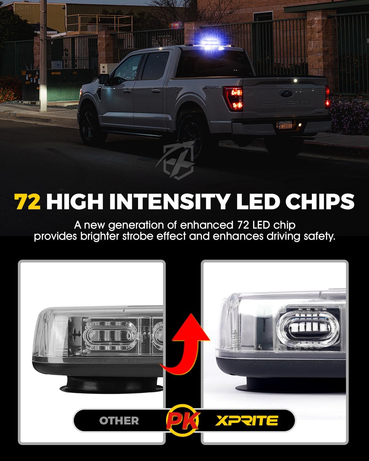 • FEATURES - The mix amber white led roof top strobe light bar has a total of 72 high-intensity Led chip. Visible in day and night, ensuring maximum safety for emergency vehicles and trucks.