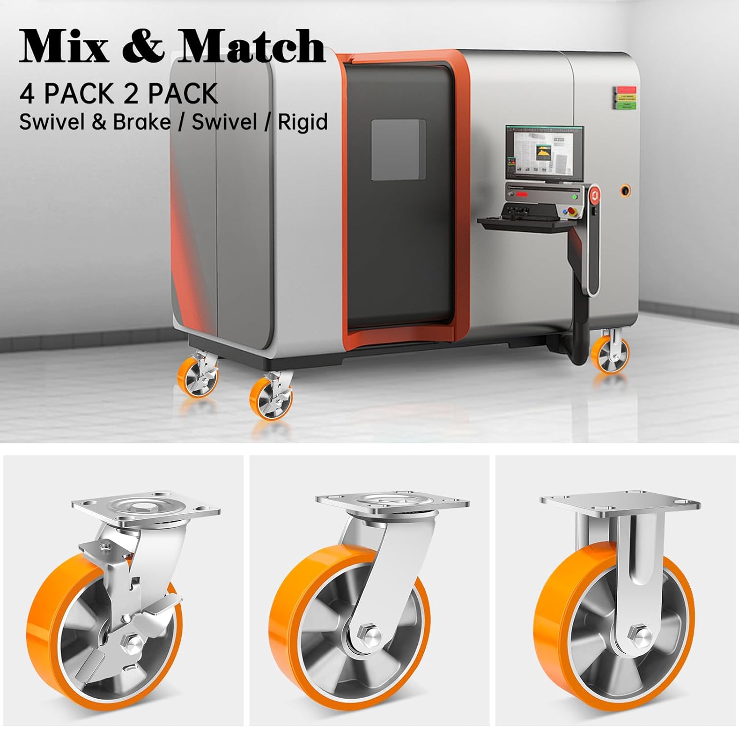 • 【Wide Application】- 6 Inch heavy duty casters with polyurethane on aluminum wheels offer abrasion resistance, oil, and chemical resistance and are non-marking helping you protect your floors. These wheels are very popular in applications such as Research Laboratories, Hospitals, Bakeries and many Industrial Manufacturing facilities.