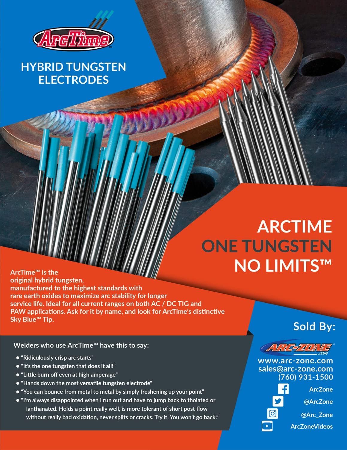 This bundle includes ONE Arc-Saber Tungsten Electrode Storage Solution with Magnetic Base and ONE 10-Pack of ArcTime Non-Thoriated Premium Hybrid Tungsten Electrodes 1/16" (Sky Blue, EWG)