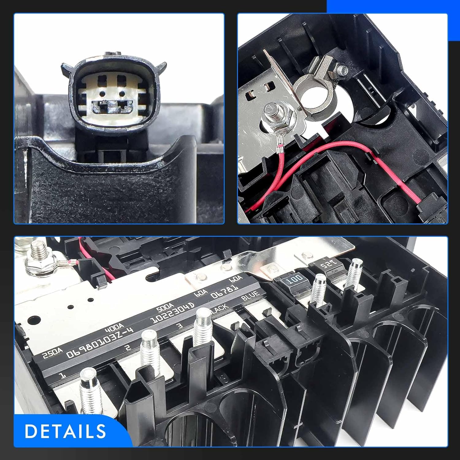 • [Durable Material]: The Battery Distribution Engine Compartment Fuse Block is made of reinforced abs plastic and metal material, with excellent impact, abrasion resistance, corrosion resistance, heat resistance and pressure resistance, provide oem quality, reliability, durability and excellent performance