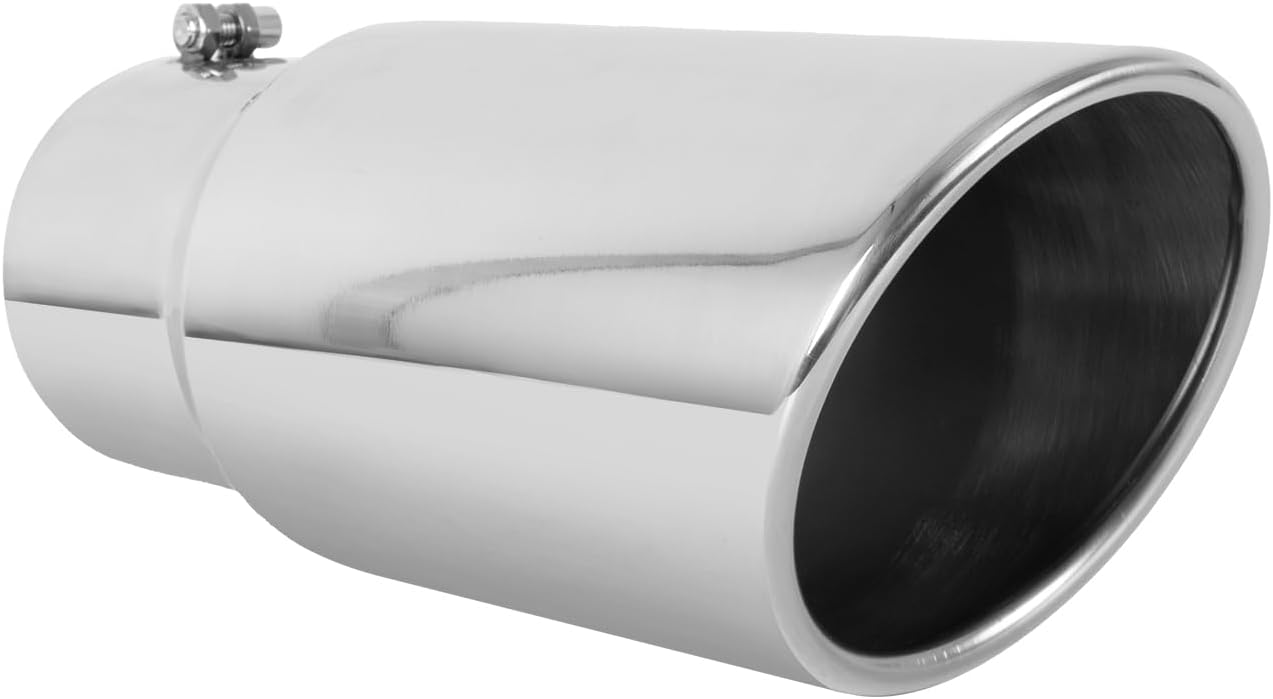 Fitment 4"(inlet) x 8"(outlet) x 15"(long length). Universal fit for vehicles with 4-inch diameter exhaust pipe outlets.