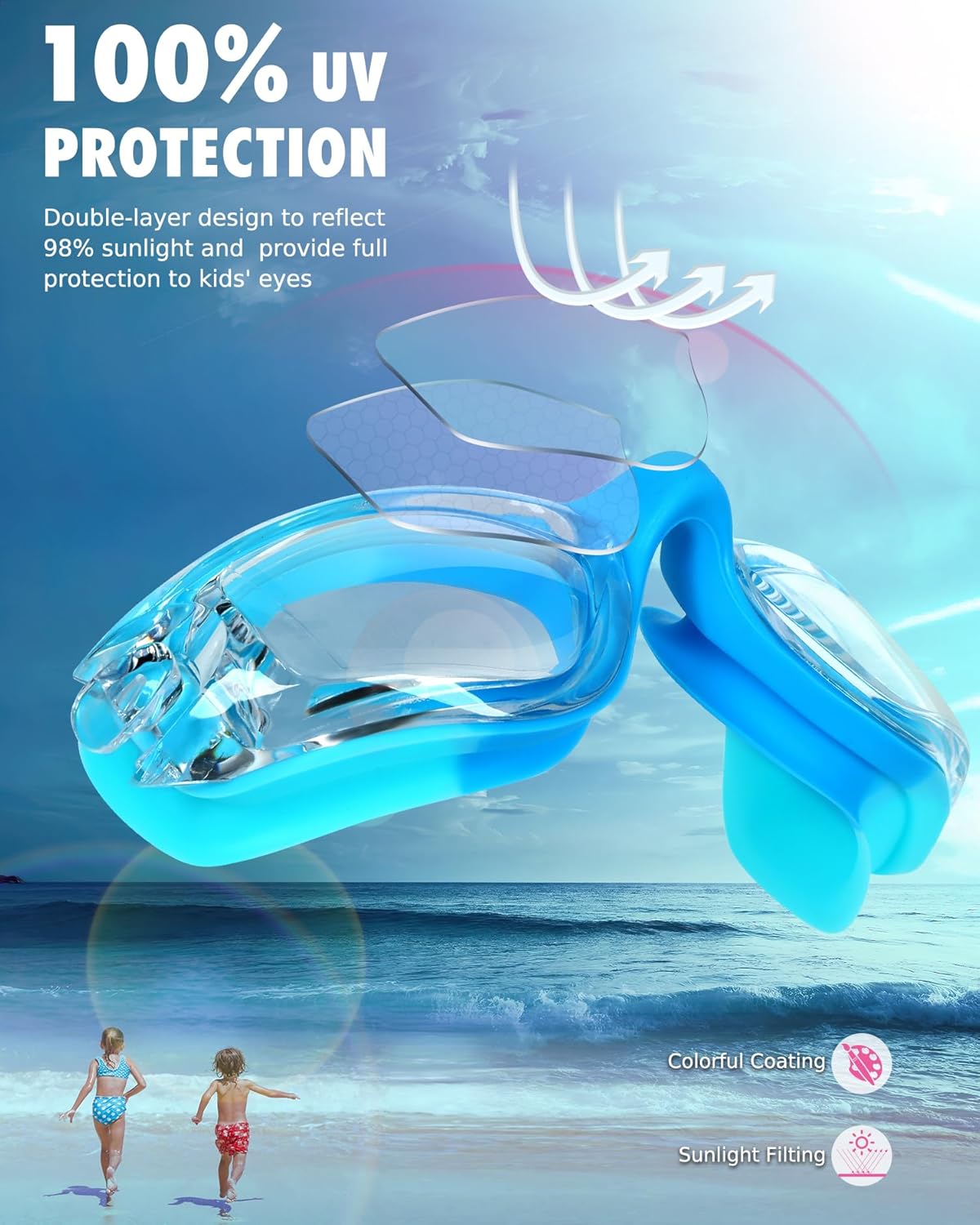 | Included Components | 2 x Kids Swim Goggles, 2 x Cases, 2 x Ear Pugs and Nose Clip Set. |