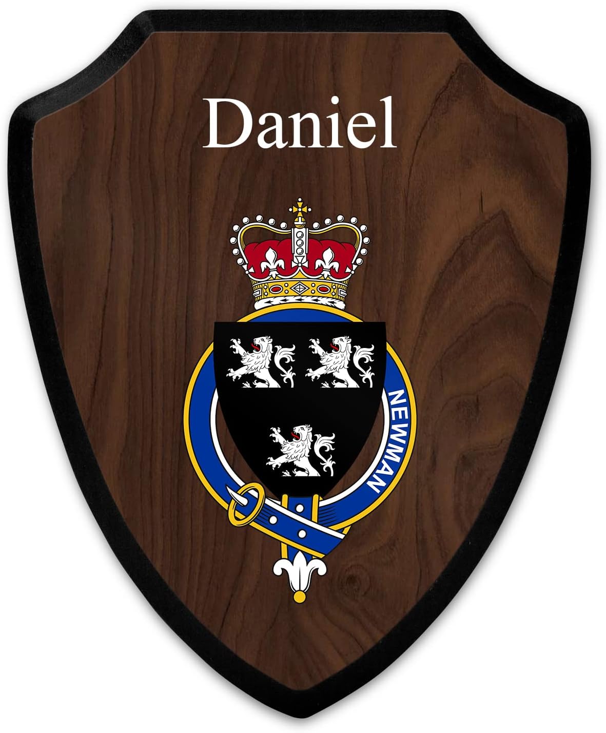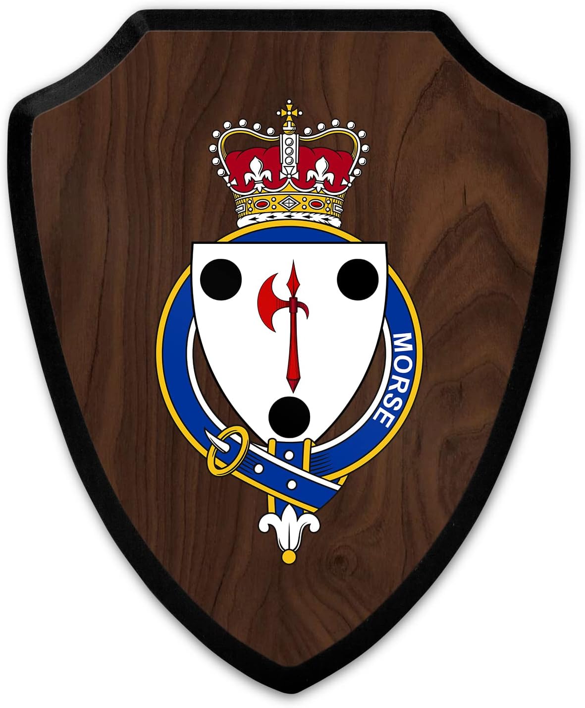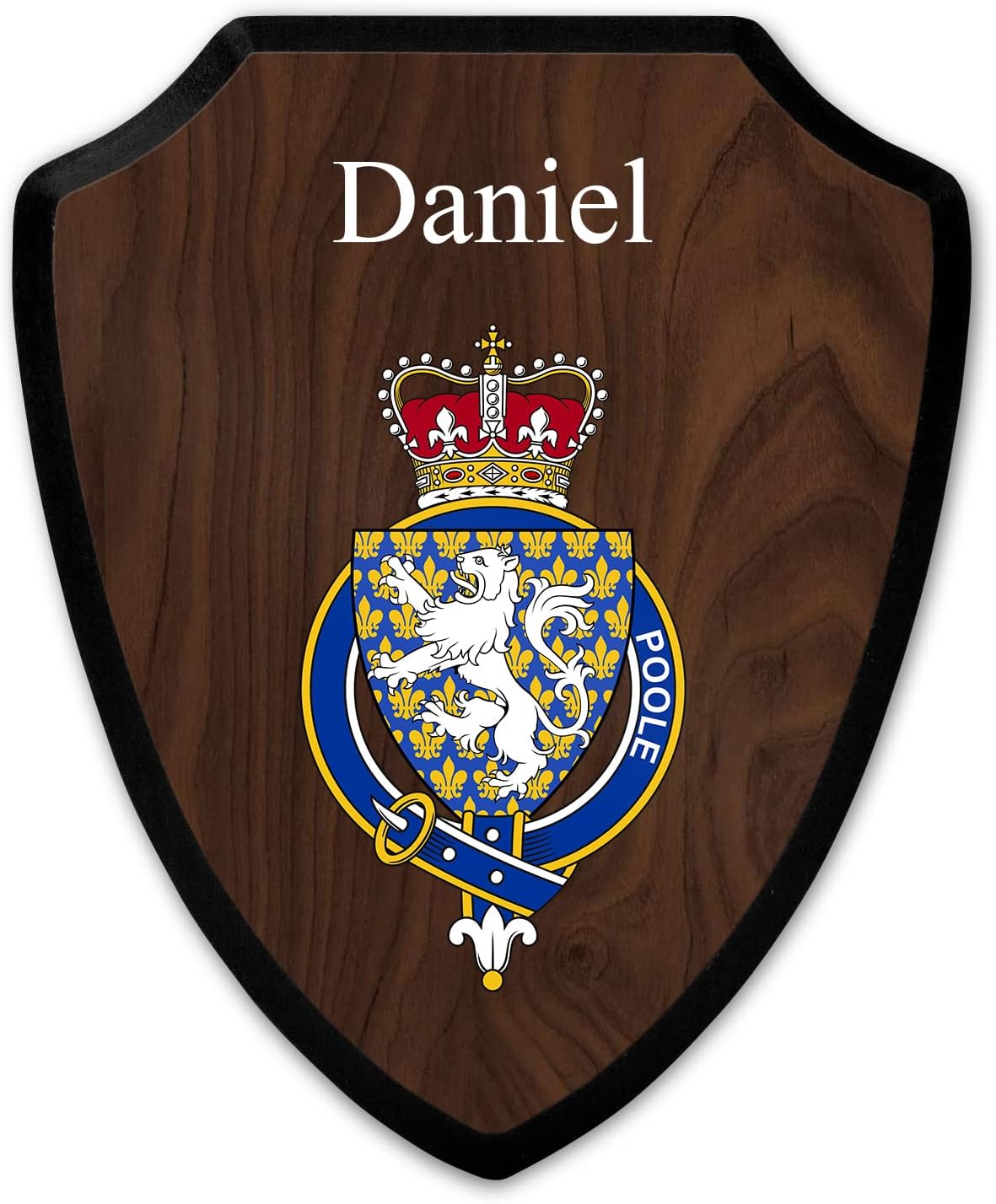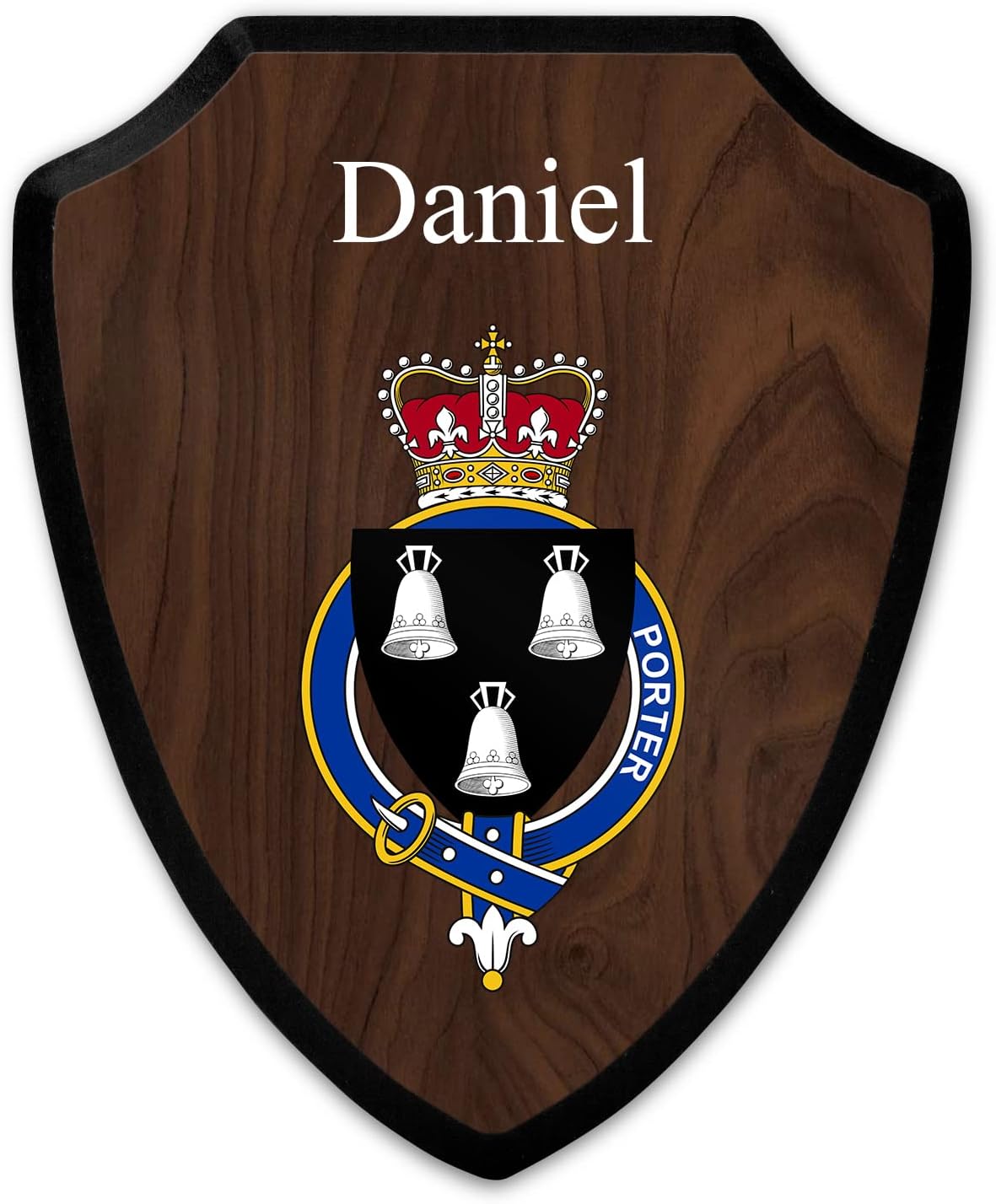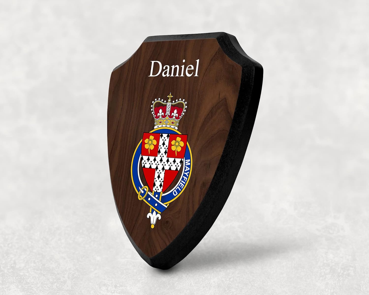 This beautifully crafted shield-shaped plaque is the perfect way to display your family crest, and personalize it with your name. Measuring 7.75 inches wide by 9.125 inches tall, this plaque is the ideal size to be displayed on a wall, door or any other place of your choice. The plaque is sublimated, meaning the image of your family crest is infused into the surface of the plaque, ensuring the design will not fade or peel over time. This process also allows for vibrant and long-lasting colors that truly make your crest stand out. With its smooth edges and high-quality finish, this plaque is sure to be a treasured family heirloom for years to come. The back of the plaque has an inset hole which enables easy hanging, giving you flexibility in where to showcase it. Whether you choose to display it in your home, office, or give it as a gift, this sublimated shield-shaped plaque is a stunning way to celebrate your family heritage. Fully customize your name by clicking the “Customize Now” button.