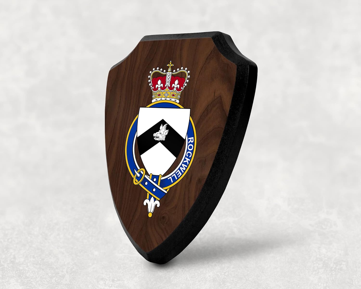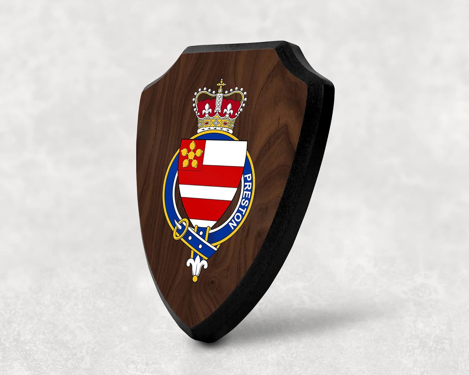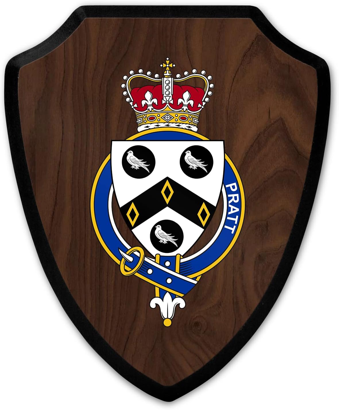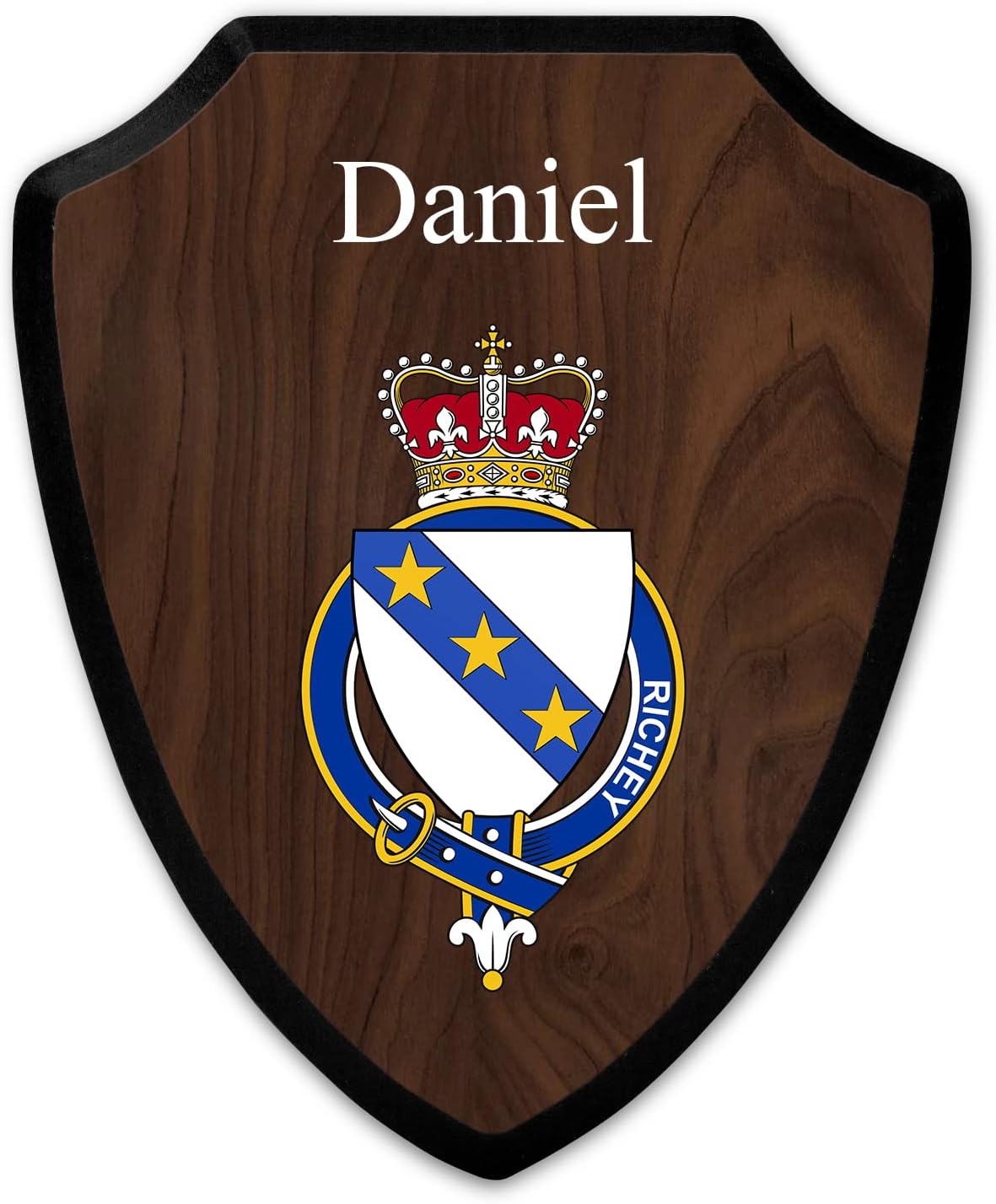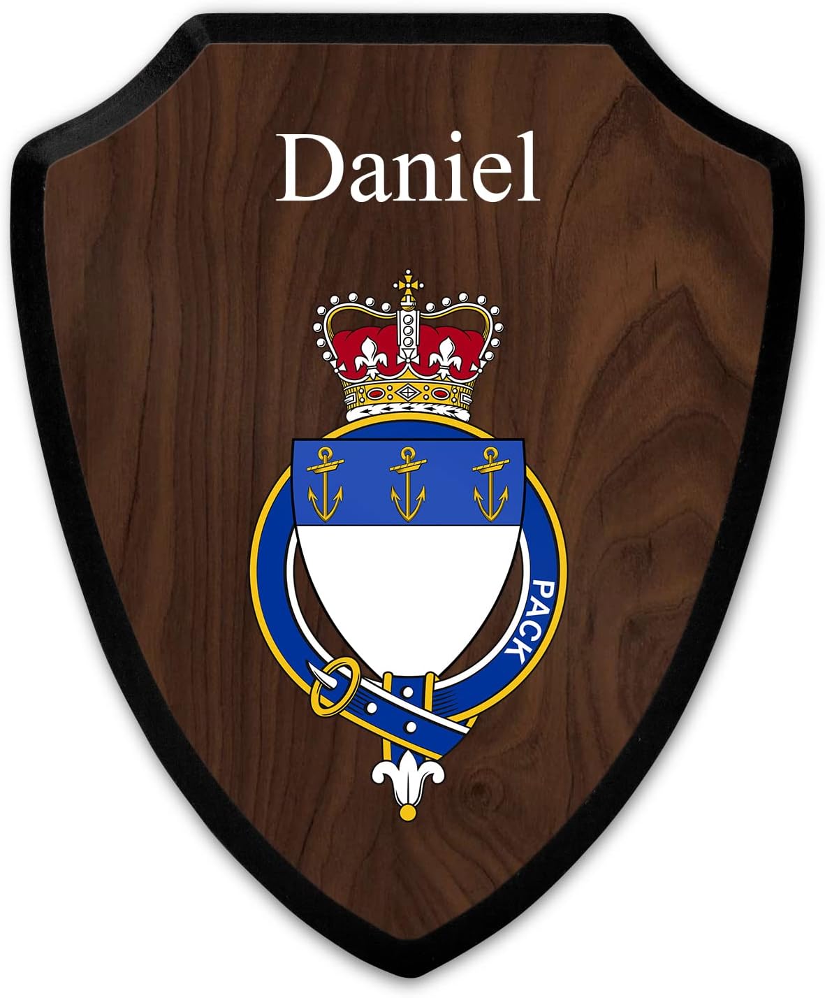 This beautifully crafted shield-shaped plaque is the perfect way to display your family crest, and personalize it with your name. Measuring 7.75 inches wide by 9.125 inches tall, this plaque is the ideal size to be displayed on a wall, door or any other place of your choice. The plaque is sublimated, meaning the image of your family crest is infused into the surface of the plaque, ensuring the design will not fade or peel over time. This process also allows for vibrant and long-lasting colors that truly make your crest stand out. With its smooth edges and high-quality finish, this plaque is sure to be a treasured family heirloom for years to come. The back of the plaque has an inset hole which enables easy hanging, giving you flexibility in where to showcase it. Whether you choose to display it in your home, office, or give it as a gift, this sublimated shield-shaped plaque is a stunning way to celebrate your family heritage. Fully customize your name by clicking the “Customize Now” button.