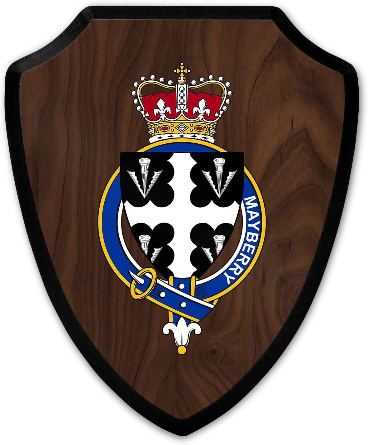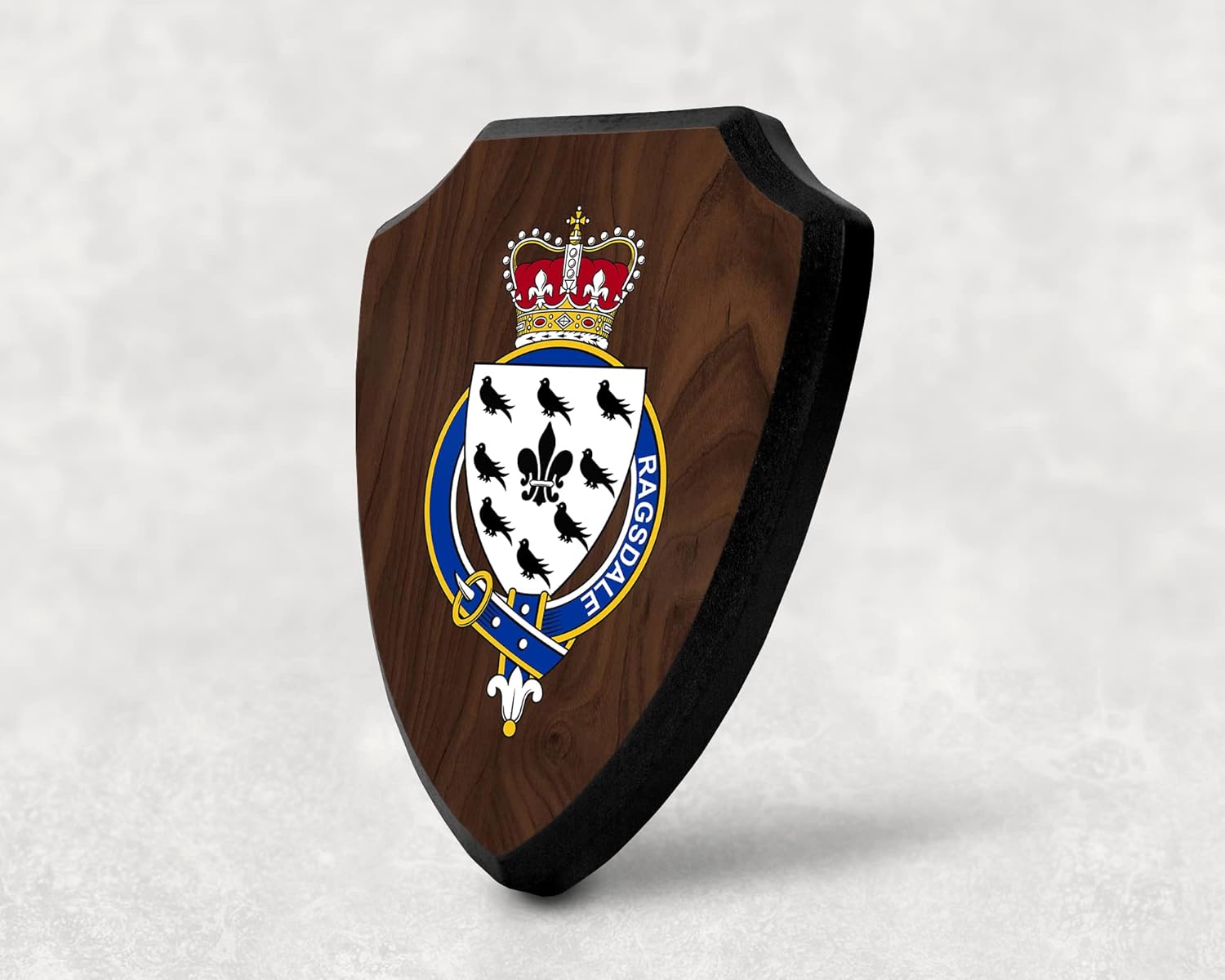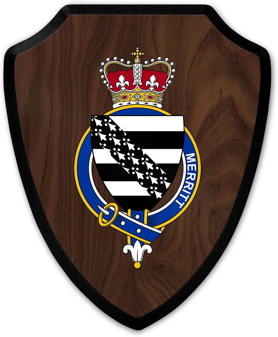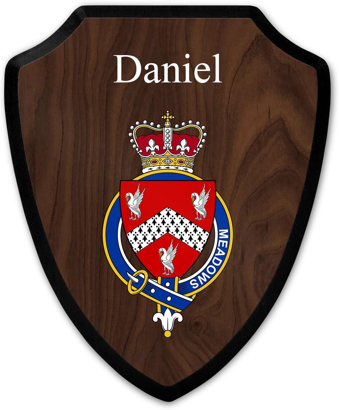 This beautifully crafted shield-shaped plaque is the perfect way to display your family crest, and personalize it with your name. Measuring 7.75 inches wide by 9.125 inches tall, this plaque is the ideal size to be displayed on a wall, door or any other place of your choice. The plaque is sublimated, meaning the image of your family crest is infused into the surface of the plaque, ensuring the design will not fade or peel over time. This process also allows for vibrant and long-lasting colors that truly make your crest stand out. With its smooth edges and high-quality finish, this plaque is sure to be a treasured family heirloom for years to come. The back of the plaque has an inset hole which enables easy hanging, giving you flexibility in where to showcase it. Whether you choose to display it in your home, office, or give it as a gift, this sublimated shield-shaped plaque is a stunning way to celebrate your family heritage. Fully customize your name by clicking the “Customize Now” button.