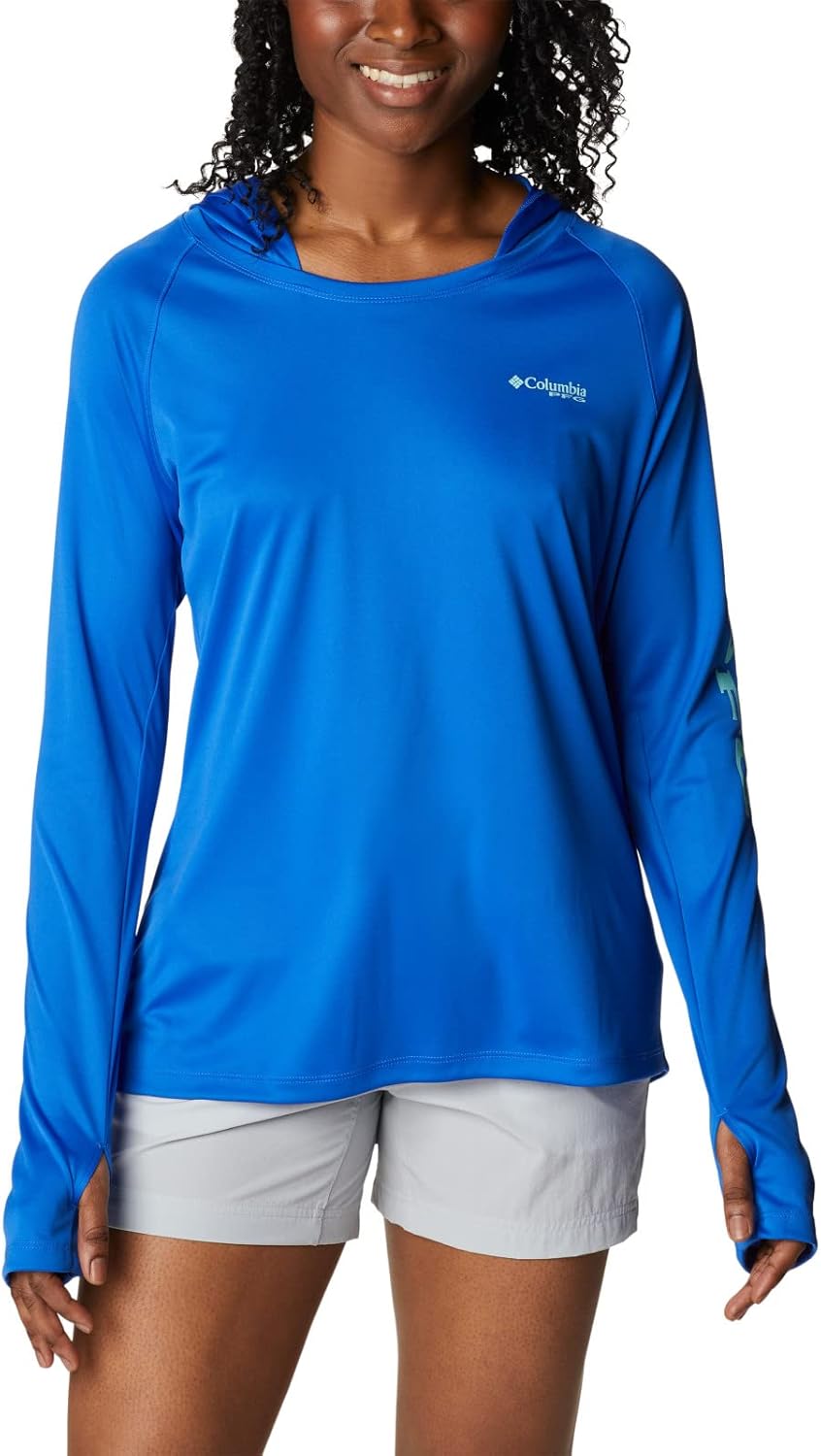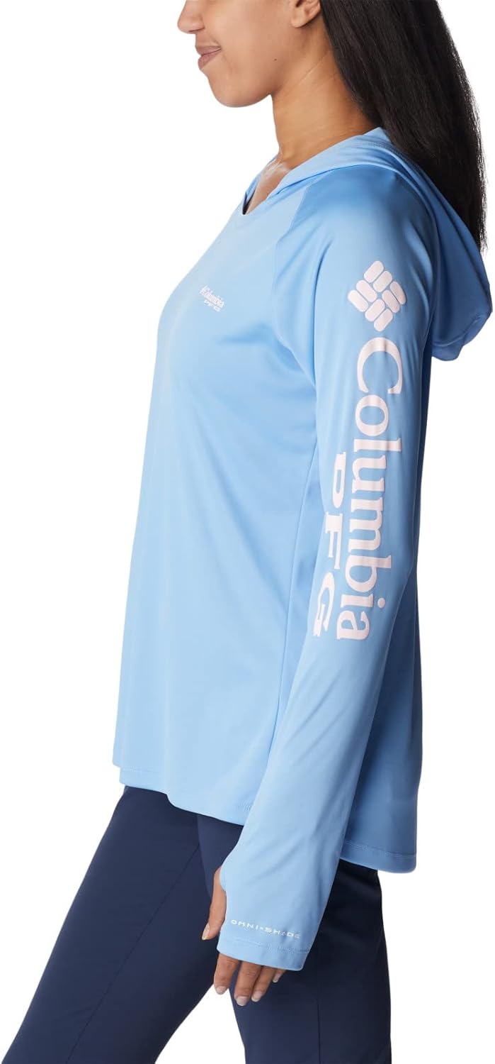 This is a casual, mid-weight pullover hoodie, great for cloudy days or chilly nights spent near a campfire. Available in 6 bright solid colors, each featuring the Columbia Sportswear and PFG wordmarks in white along the upper-left arm.