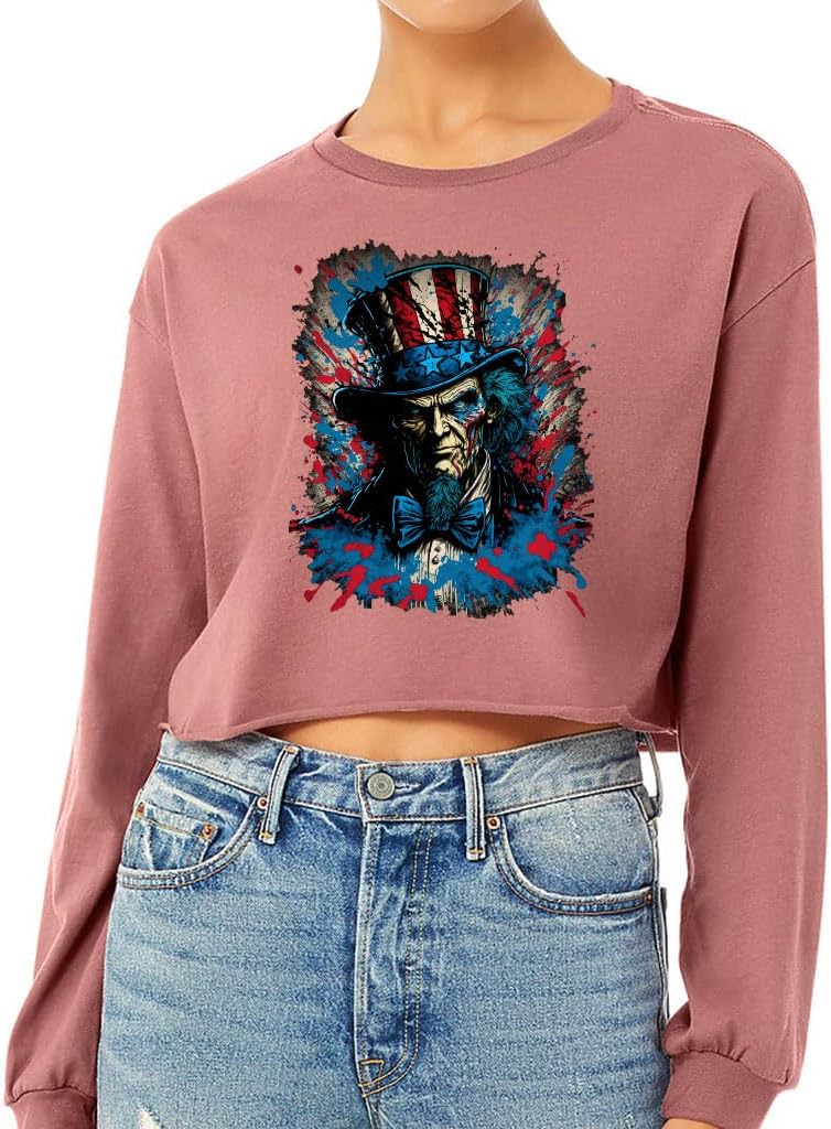 Simple but elegant Patriotic Cropped Long Sleeve T-Shirt is easy to pair with shorts, skirts, and skinny jeans for casual and chic looks. Perfect to layer with cardigan, blazer, jacket or knitwear. You will really love Patriotic Items for Women. Suitable for casual, work, date, weekend, holiday, party, club, pub, office, house, outdoor, vacation, maternity etc. A must-have long-sleeve shirt for women!