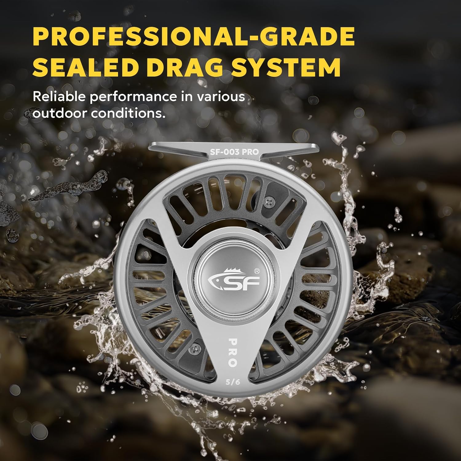 The SF003PRO Fly Fishing Reel series features precision-machined 6061-T6 aluminum construction with a sleek Gunmetal Gray or Gunmetal Gray & Black finish. Designed with a mid arbor spool and smooth stainless steel drag system, it delivers consistent performance for both left- and right-handed anglers. Available in multiple sizes (3/4, 5/6, 7/8wt), this reel series is ideal for targeting various species in freshwater fly fishing environments. Its CNC-crafted frame ensures strength and durability while maintaining a lightweight feel, making it the perfect companion for your next casting adventure.
