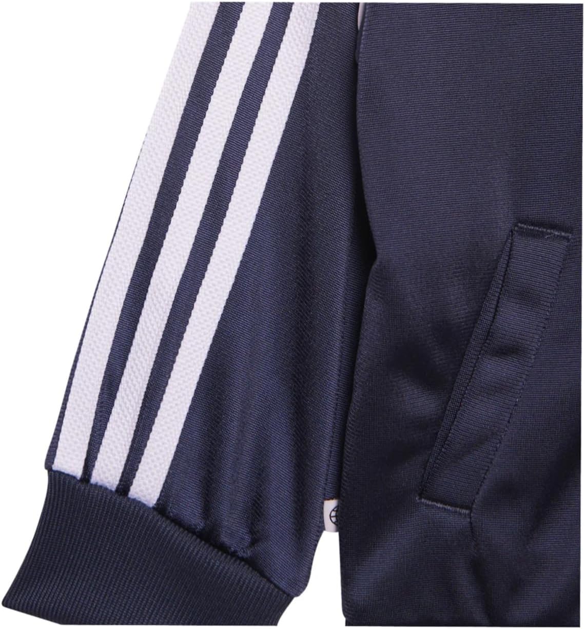 It's never too early for iconic style. This kids' track suit from adidas Originals features a full-zip jacket with a ribbed collar so it looks just like the grown-up version. The included pants can be secured with a drawcord on the elastic waist.