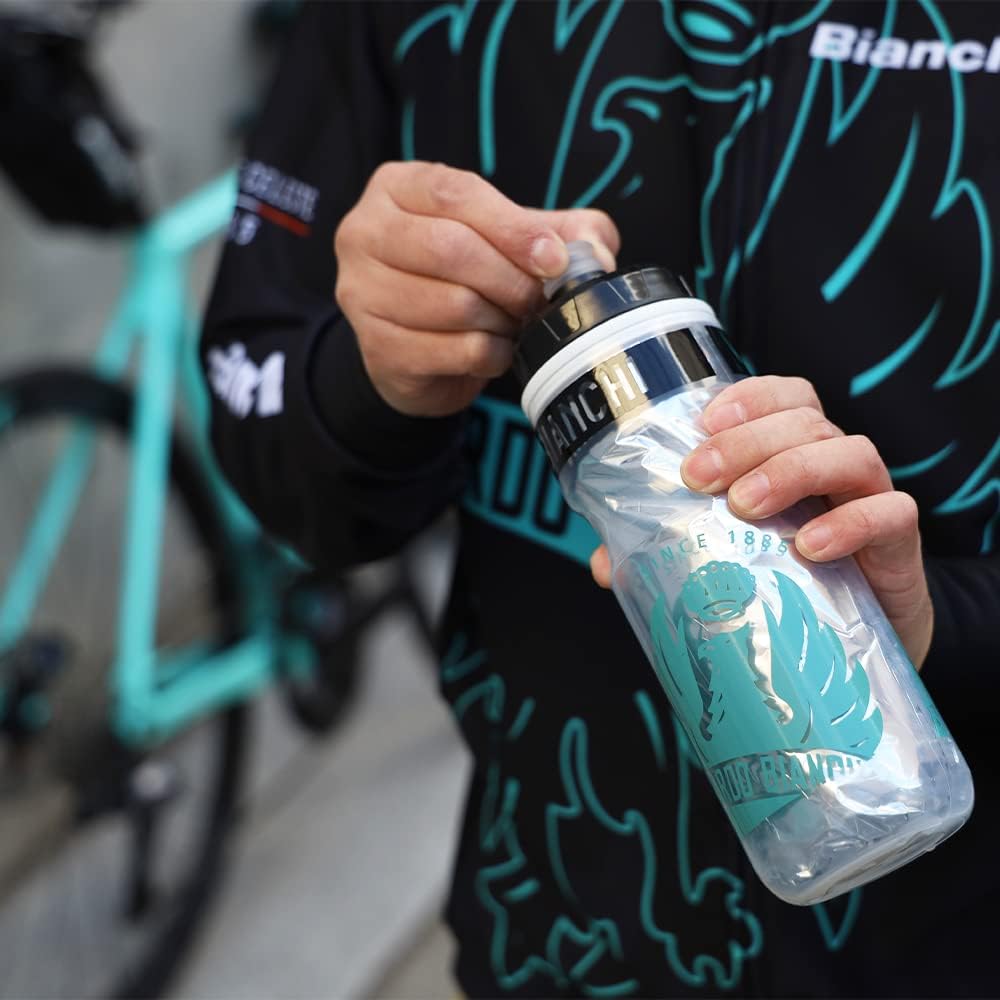 This bottle features a special double layer bottle that keeps you cool during the hot summer months. The capacity is a little larger at 600ml, and is large enough to accommodate plastic bottles (20.3 fl oz (600 ml) that you bought during riding. The eagle markings are lined up with 2 colors: Cheleste and black. These two colors are perfect for bianchi bikes. A design you want to have both without hesitation! The cap has a large aperture to allow for smooth insertion of ice cubes. In addition, it has a simple structure with little curving, so it is easy to clean after use. This bottle is recommended for long cycling. Try it!
