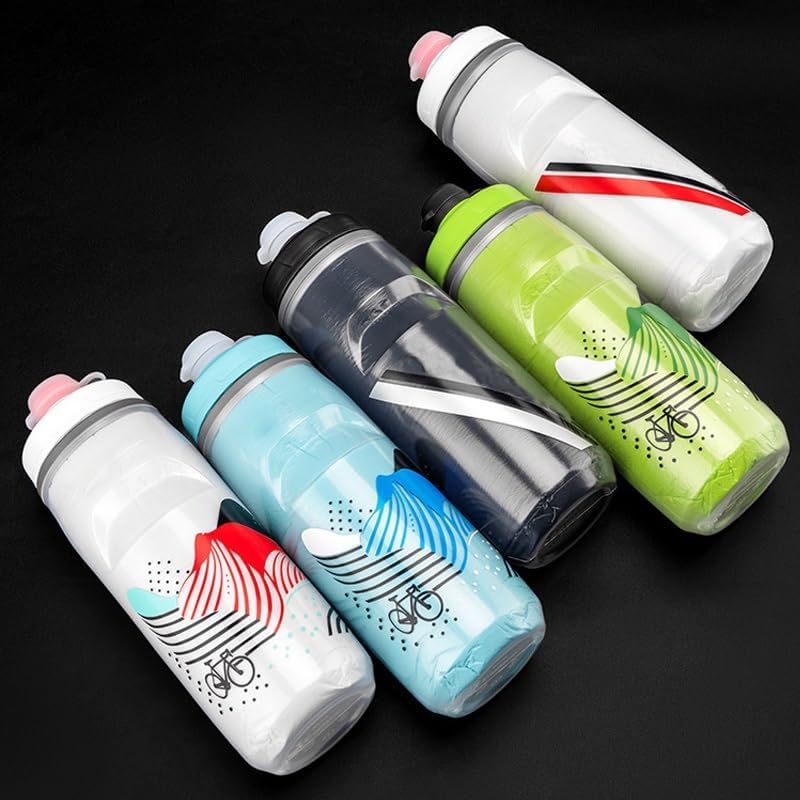 Product name: Cycling cold water bottle.Weight: About 98+5g.Capacity: 620ml.Cooling duration: about 5hMaterial: PP bottle body + polyethylene foam (thermal insulation foam)+ food grade silicone (spout).Size: about 7.4cm(diameter)*23cm.Color: Black, white, cyan, green, white red.Application: daily hydration, cycling fitness, outdoor sports.Features: internal and external three-layer design insulation thermal insulation cotton cold longer. The capacity is about 620ml to ensure that there is enough water supply on the ride. 7.4CM diameter is suitable for most kettle holders, suitable for most kettle holders on the market, tight and stable is not easy to fall off. Food-grade silicone spout, made of food-grade silicone material, makes your drinking water more assured. Squeeze the water, control the water, not easy to choke water. Use leak-proof self-sealing cross valve for spout. Unscrew the spout to spray water and seal it watertight. 5CM large diameter, easy to clean the inside of the bottle. Dust cover can be removed to prevent dust and sand, and can be removed to clean the spout. Ergonomic design, easy to grasp with one hand,Squeeze less effort, comfortable grip, not easy to slip.Attention:The cold storage test environment is that the pot is filled with ice cubes at night in summer, and the water temperature in the pot is cold after the ice cubes melt the hydration water for about 5 hours. The cold storage time is different according to the use environment.Do not fill with boiling water!The body quality of the cup is PP5, it is not recommended to fill with overheated high temperature water (recommended temperature :0℃70℃) to avoid deformation of the kettle due to overheating.The folding layer insulation layer is better!Three-layer structure insulation, the middle layer is aluminum tin layer, aluminum tin foil layer reflects the radiant heat brought by the sun, the cushion design blocks the th