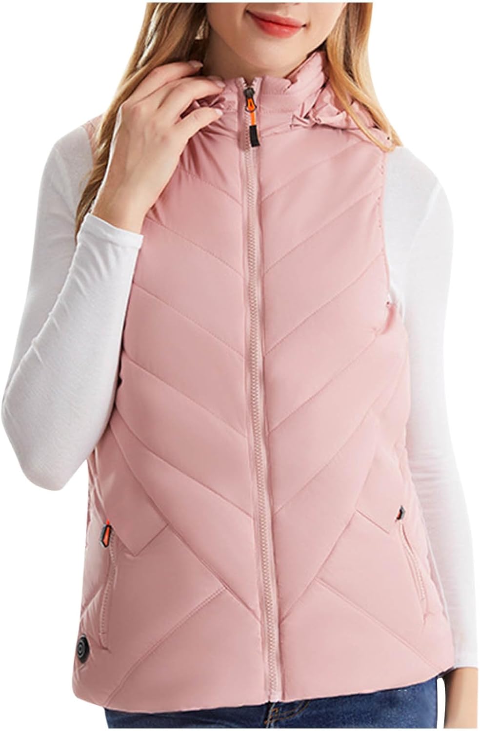 Womens Heated Vest Ladies Hood Heated Gilet Full Zip USB Charging Heated Body Warmer 3 Temperature Electric Waistcoat