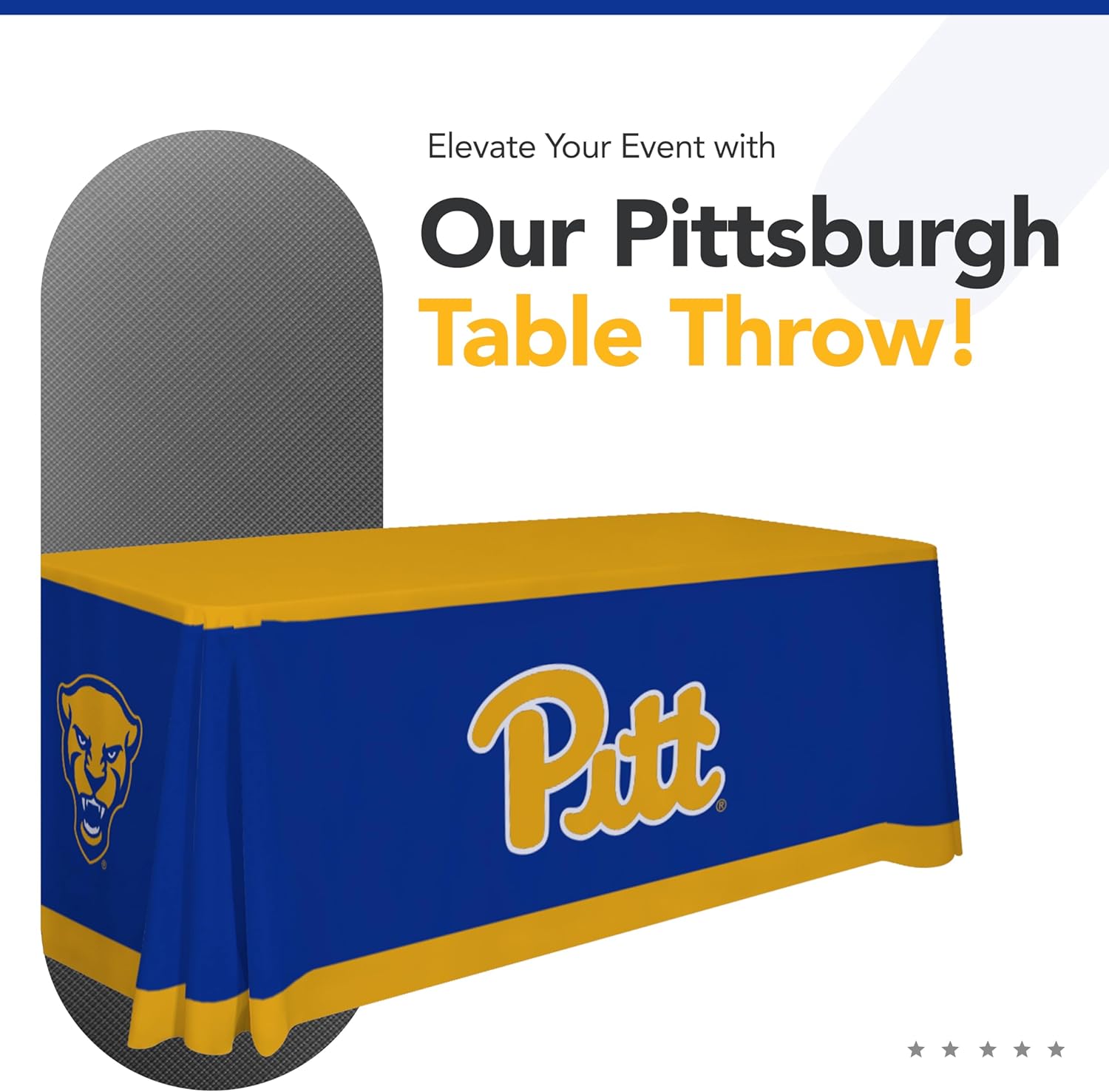 Pittsburgh Panthers 6' College Sports Printed Table Throw - NCAA Licensed - Polyester Draped - School Tablecloth (Navy Blue, Gold)