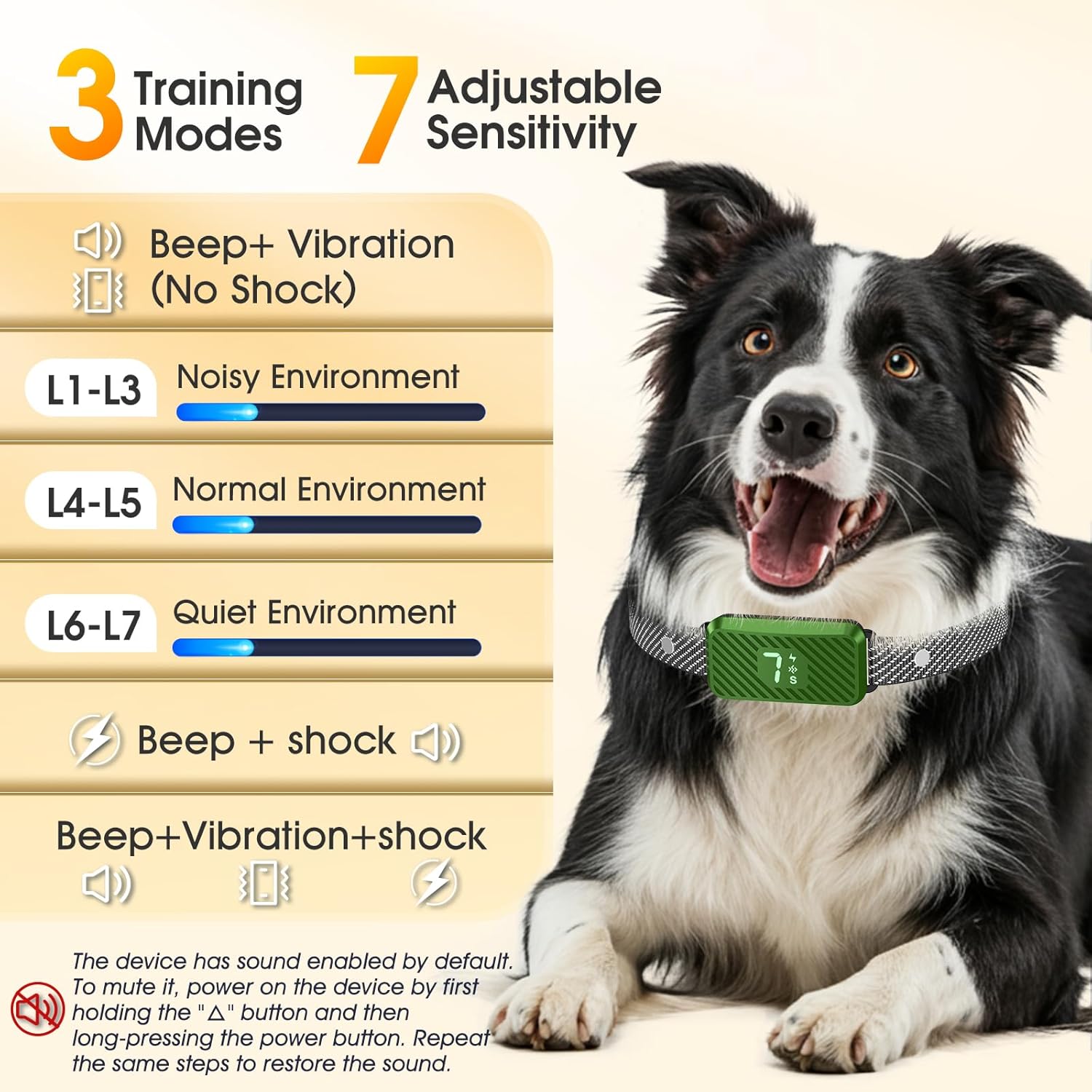 • 【3+7 Customizable Training Modes】 Every dog is unique, and so are their training needs. That's why this no bark collar for small dogs or for ferocious large dogs has been designed with 3 customizable modes (beep+vibration and other combinations) and 7 sensitivity levels. Whether it's late-night apartment living or daytime backyard play, you can easily adjust this stop bark collar's settings for optimal results. It's like having a professional dog trainer available 24/7!
