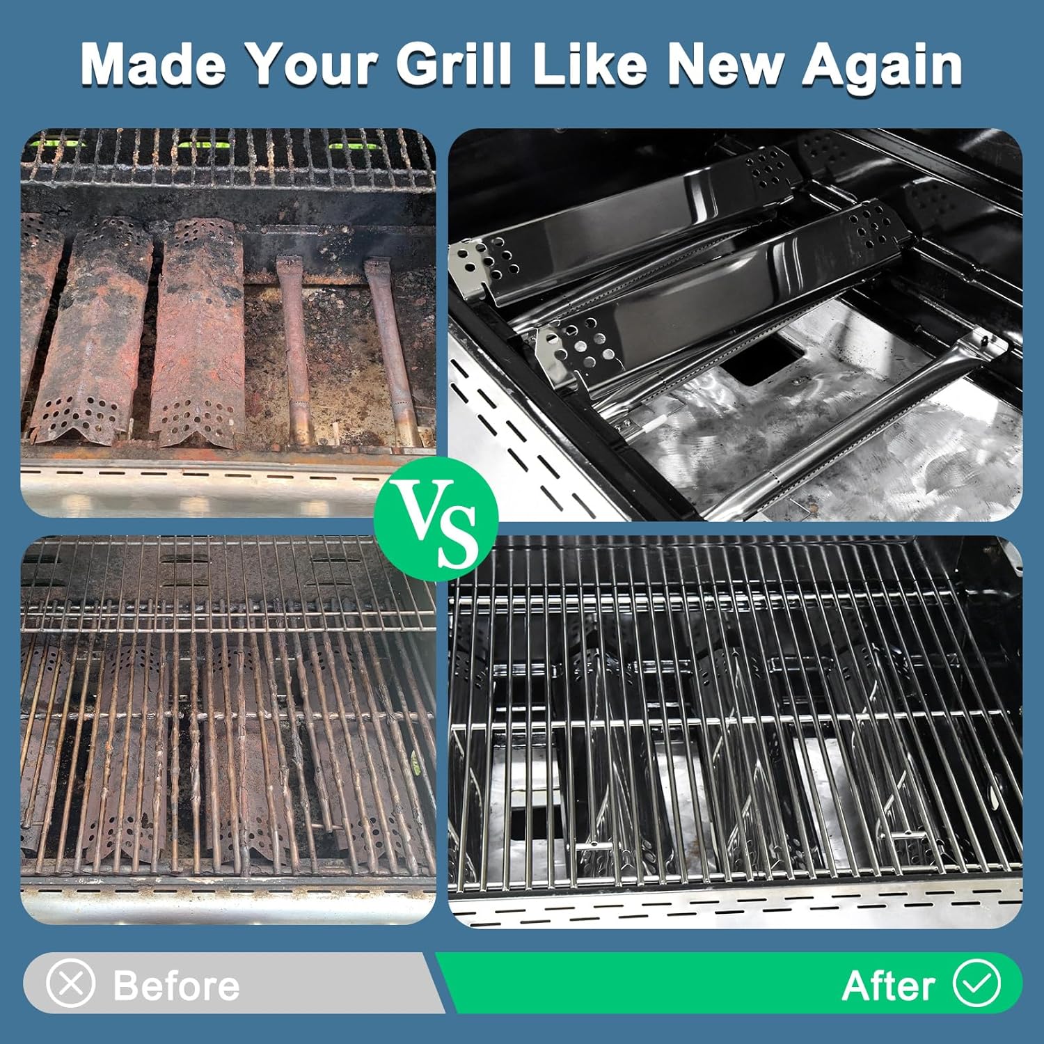 Over time, parts on your barbecue grill will wear out and rust, making your grill not work the way it is suppose to. Get your grill working again with this for nexgrill 720-0882a evolution infrared plus 5-burner gas grill rebuild kit!DOES IT FIT?✔️ For Nexgrill 5-Burner 720-0882A 720-882A 7200882A 720-0882AE Gas GrillsSPECIFICATION★ Grill Burner Material: stainless steel, Dimensions: 15" x 1"★ Heat Plate Material: stainless steel, Dimensions: 14 9/16" x 3 1/4"★ Grill Grate Material: cast iron, Dimensions: 16 7/8" x 11 1/2" for 2pcs larger grates, 16 7/8" x 5 5/8" for 1pcs small grate, 16 7/8" x 28 5/8" for total★ Included With Purchase: 3 grill grates, 5 replacement heat plates, 5 grill burners, 5 grill ignitersADVANTAGE & BENEFIT👉Perfect fit, Work well👉Easy to install👉Much cheaper than buying locally👉Made your grill like new again👉Extend the life of your old grill
