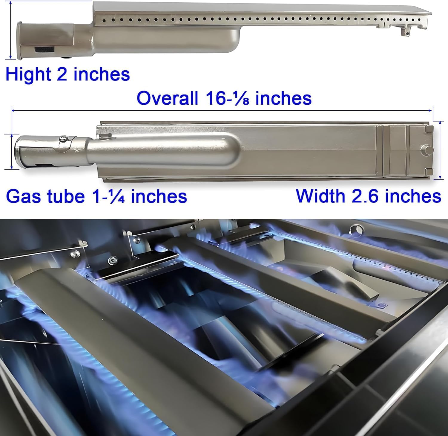 Heavy Duty Cast Stainless Steel Grill Burner 4 Set for Bull 👉15,000 BTU's 👉304 Grade Stainless Steel Construction 👉Reliabull Heat Technology 👉Fits Most Bull BBQ Grills Bull BBQ Cast stainless steel burner replacement for most Bull BBQ grills Angus Grill Brahma Grill 7burner Premium Grill Outlaw Grill Lonestar Grill New style Premium Steer +2015 Renegade Grill Diablo Grill Bronco Bullet Grill Yukon Bullet Grill U.I 4 & 5 Burner grills Premium Steer Grill 24-Inch Bull Grills require three(3) burners, the 30-Inch Bull Grills require four(4) and the 38-inch Bull Grills require five(5) burners. Heavy Duty Cast Stainless Steel Grill Burner also compatible with for high-end gas grills like Cal Flame, Blaze, Aussie, Bakers & Chefs, Turbo, Thermos, Char-Broil, Jenn Air, Nexgrill, and more.