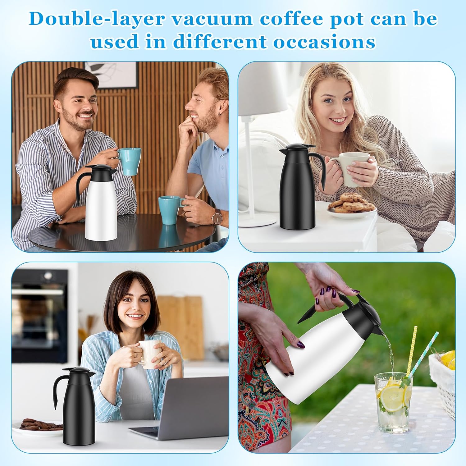 Features: There are 2 colors of the thermal pot flask for you to choose to purchase, you can make sure about the matching color for your table or places before purchase. The vacuum coffee carafe comes with brushes, easing the cleaning process. This ensures that the product is not only easy to use, but also maintains its aesthetic appeal. Specifications: Main material: stainless steel Color: silver+black or white+black Capacity: about 51 oz/ 1.5 l Package includes: 2 x Insulated tea pots 2 x Brushes Notes: Manual measurement, please allow slight errors on size. The color may exist a slight difference due to different screen displays.