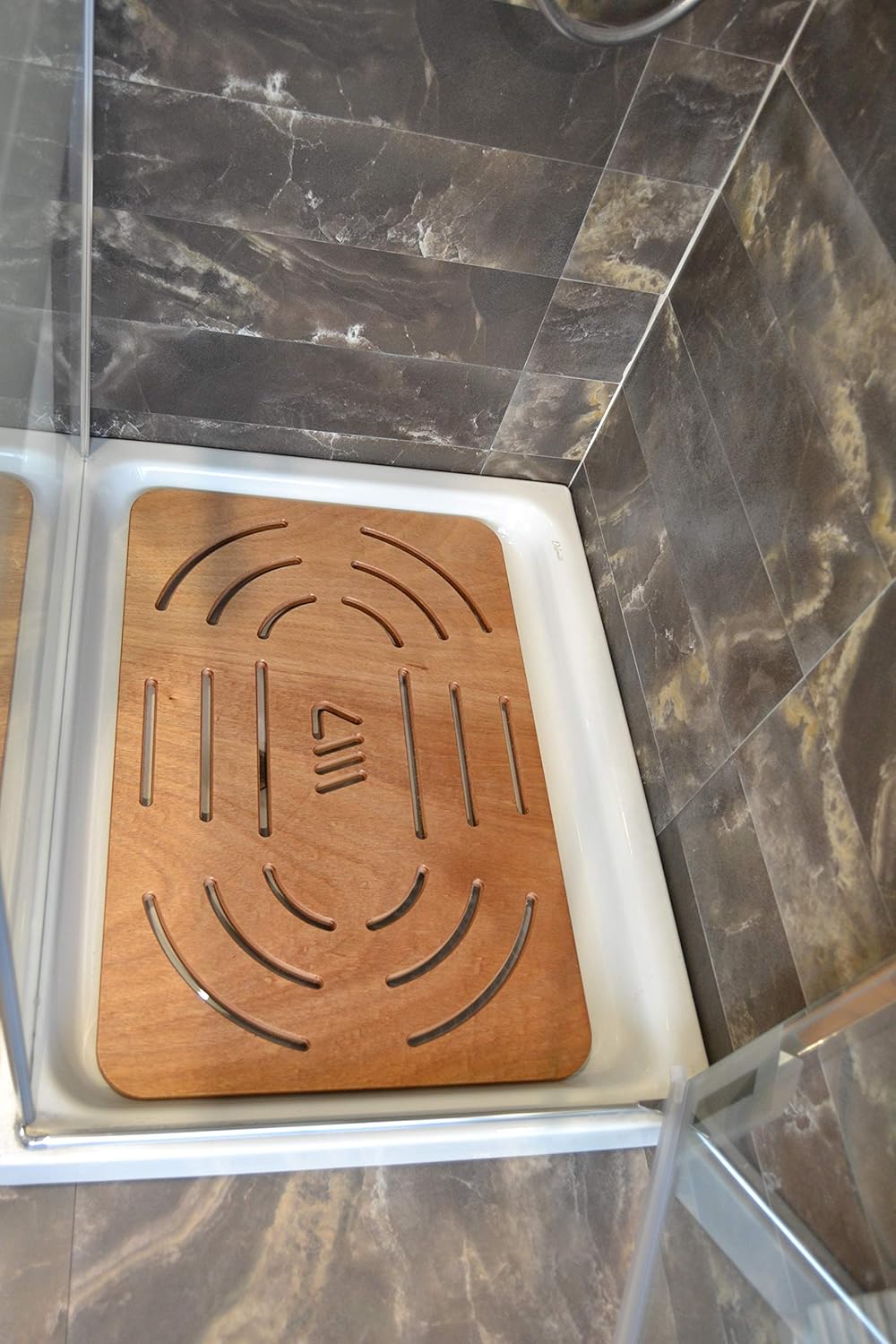 Okumé marine plywood deck, certified for "long weather resistance". Grooves and design to promote anti-slip function and drainage. Soft rubber feet